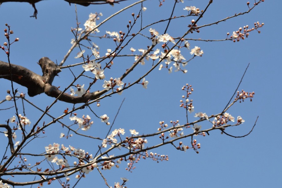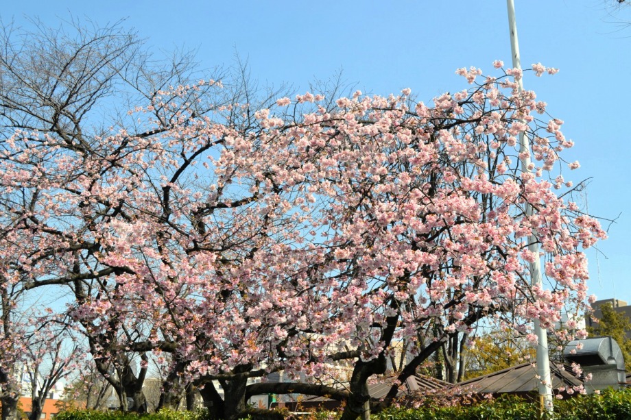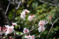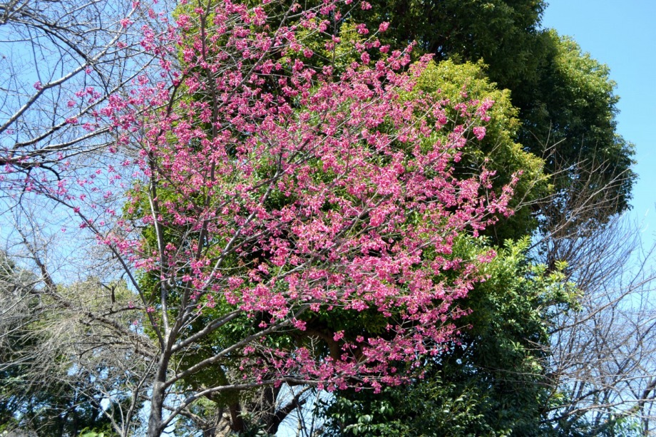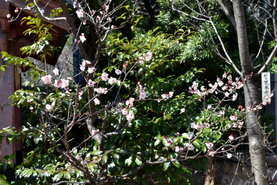 芝東照宮にはハナ桃の花が咲いていました。梅林にはヒヨドリがたくさん集まっていました。