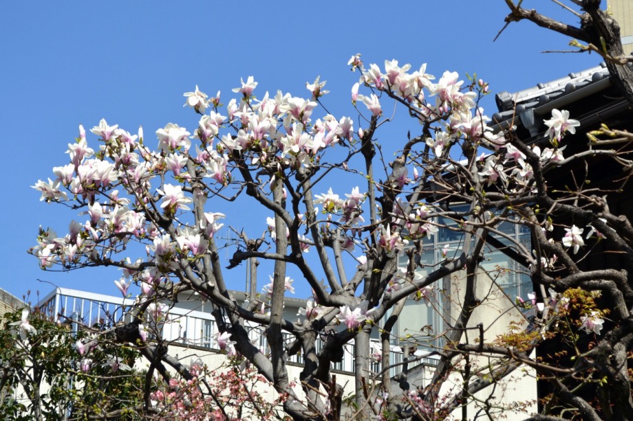 「一言」三田4丁目の交差点の近くには色々な花が咲いて春らしくなっています。ㇱモクレンの花が咲いていたㇼ、道路を 入ったところにはオオシマザクラの大きな木に花が咲いています。札ノ辻の近くのビルの前には大きな桜の木が 植えられていて花が咲いていました。本芝公園には大きな石楠花の木にピンクの大きな花がいっぱい咲いています。