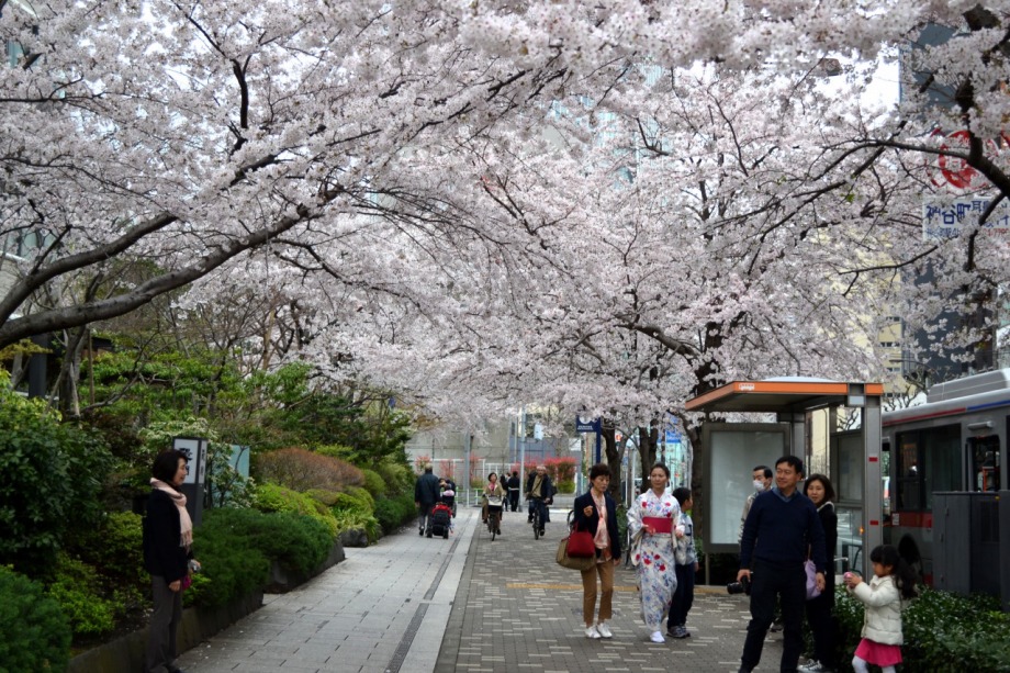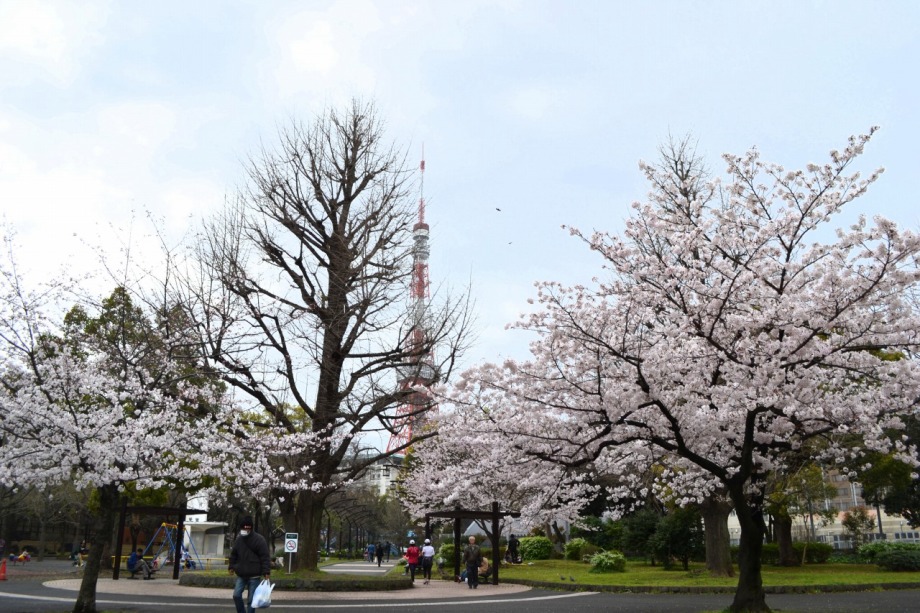 「一言」愛宕神社の前の通リに立派な桜並木が出来ていました。愛宕神社から愛宕グリーンヒルズの回りまで、長い桜並みで綺麗です。 芝公園の入り口にも桜の花が咲いていて、東京プリンスホテルの回りまで、桜の木がつながっています。芝公園の入り口には チューリップの花が咲いていました。芝高の横の広場にも大きな桜の木が多く、花見をする人がたくさんいました。
