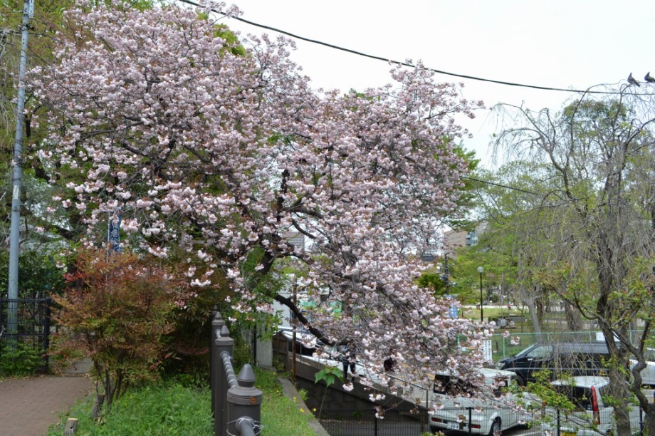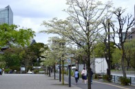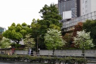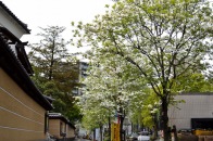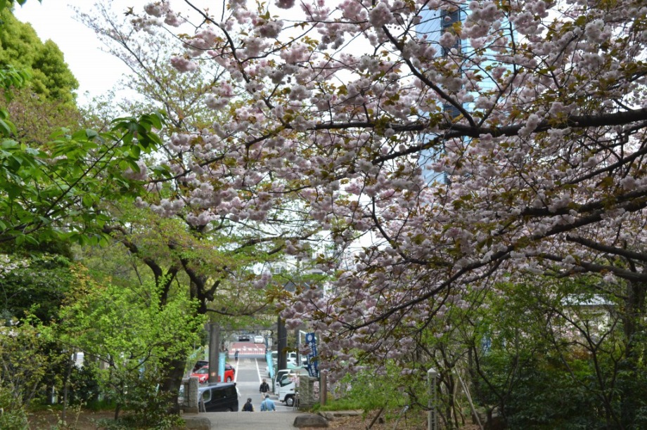 咲き出しています。芝公園の横の妙定院の前の通リの並木は白い花が咲き出しています。東京プリンスホテルの前には