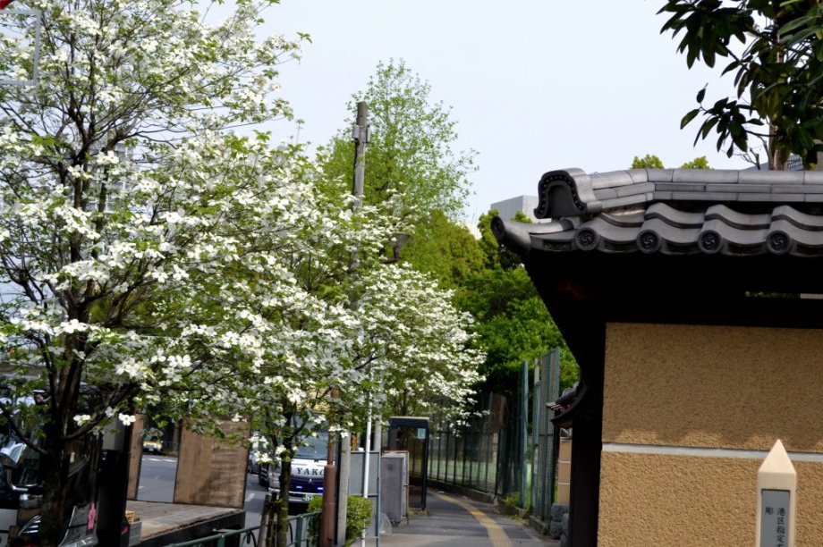 「一言」港区の花と言われているハナミズキの花を見に行きました。ハナミズキは色々なところで植えられていて、そろそろ花が