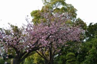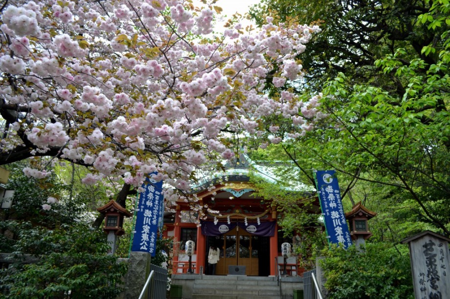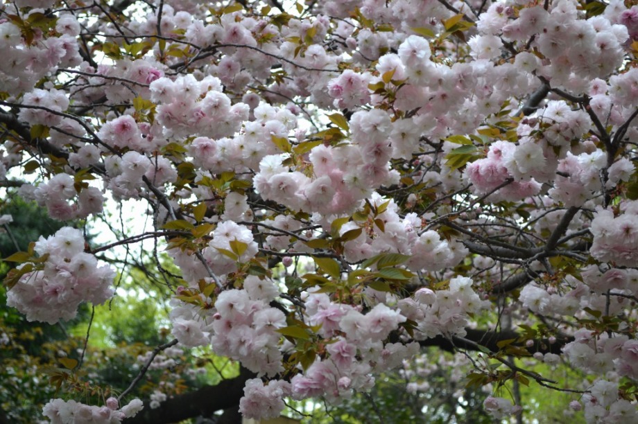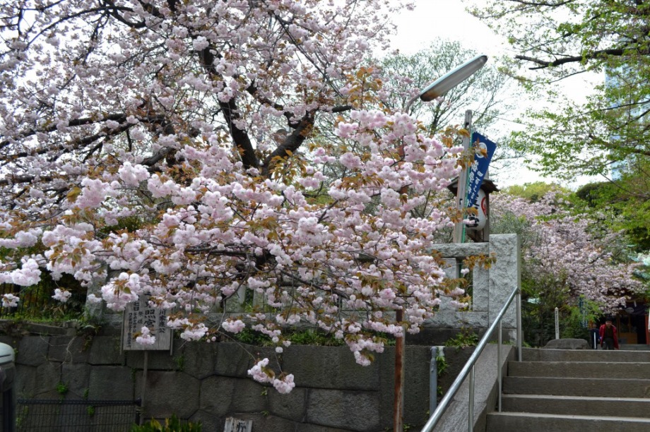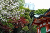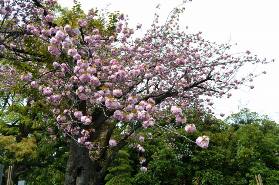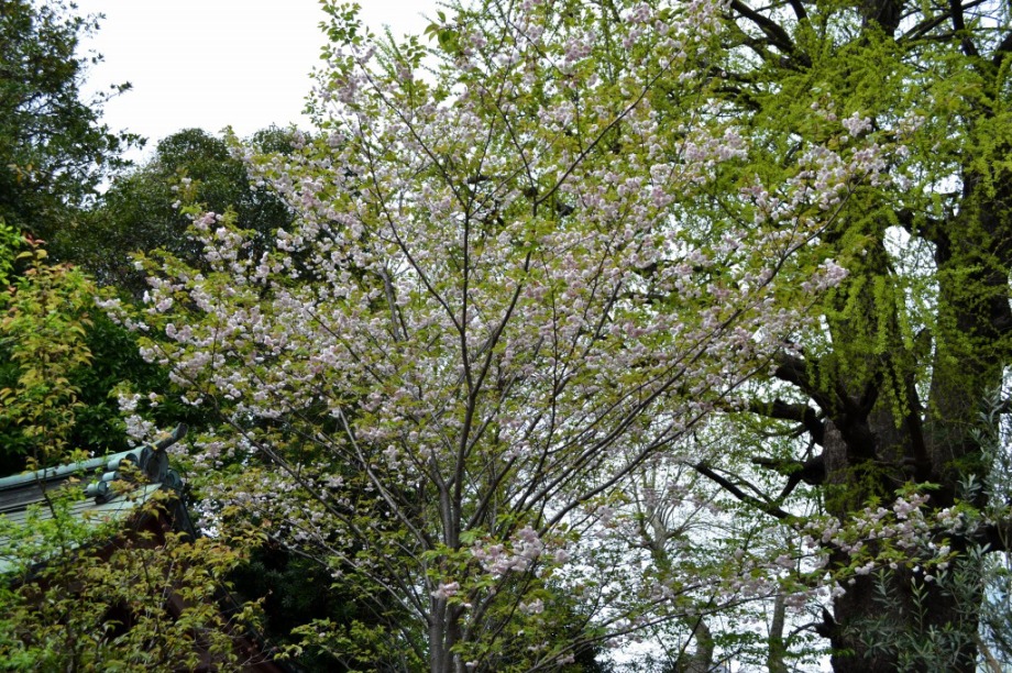 赤い花が咲いています。花が可憐なので、派手さは少ないが、咲くと綺麗です。芝東照宮の八重桜が見頃になっています。