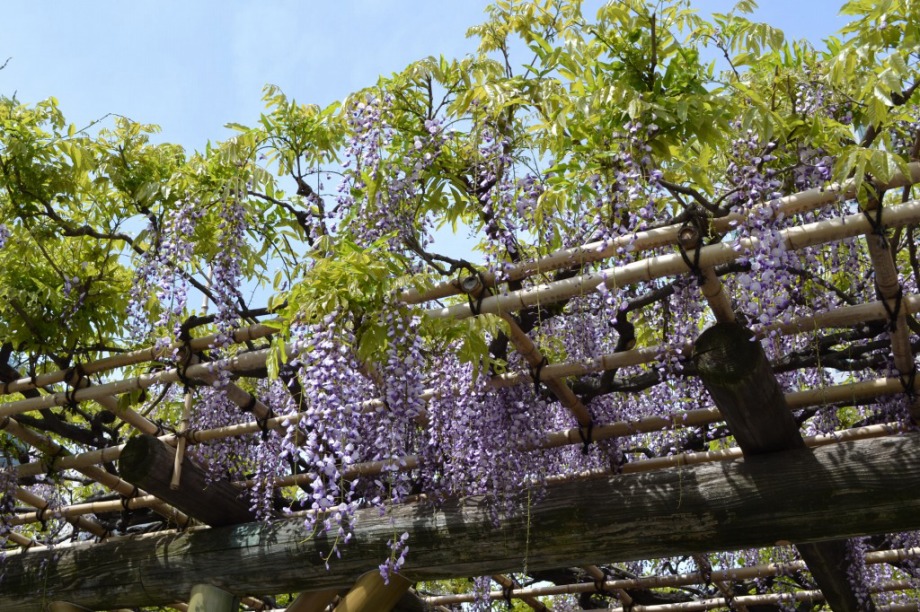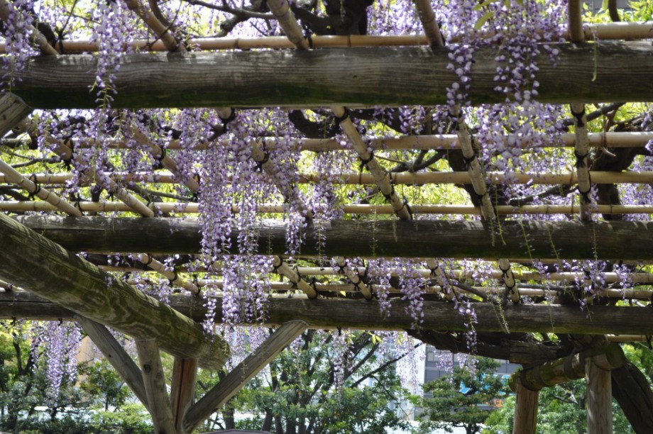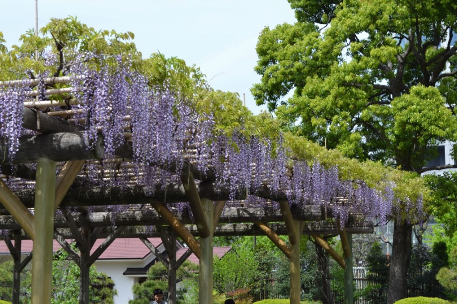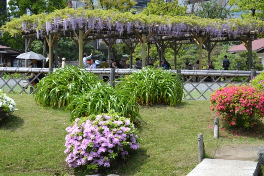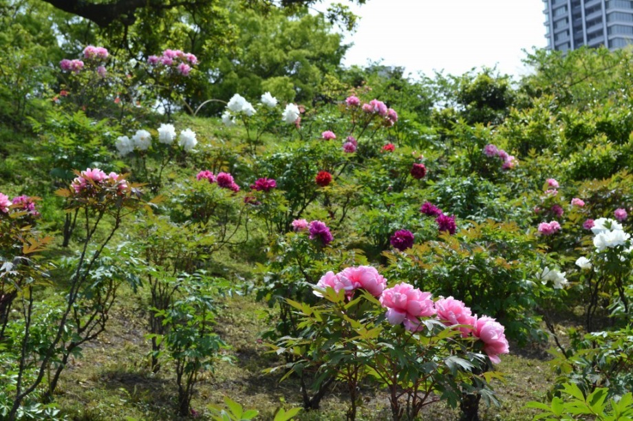 「一言」旧芝離宮に行くと牡丹と藤が見頃と書かれていましたので、入ってみました。大きな藤棚があり、藤の花が咲いていました。藤の花が かなり長くなっていて見頃という感じでした。牡丹は奥の丘にあり、丘一面に植えられていました。既に見頃になっていましたが、丘の 中には入れませんので、遠くから見るという感じでした。あやめや八重桜、ハナミズキなども咲いていました。