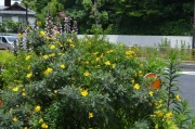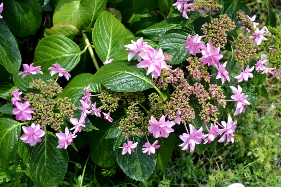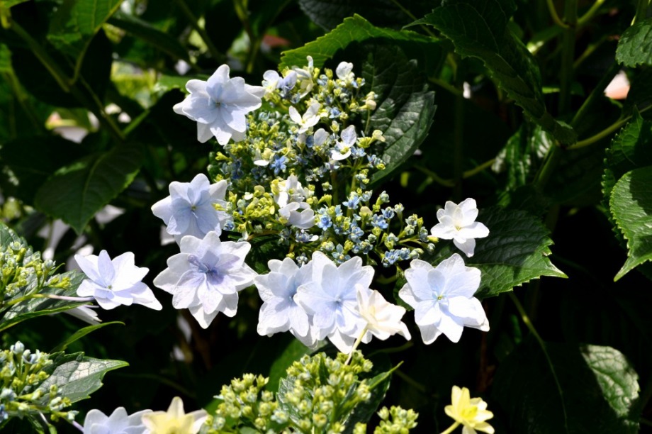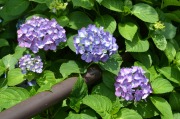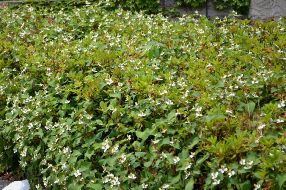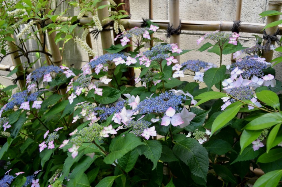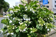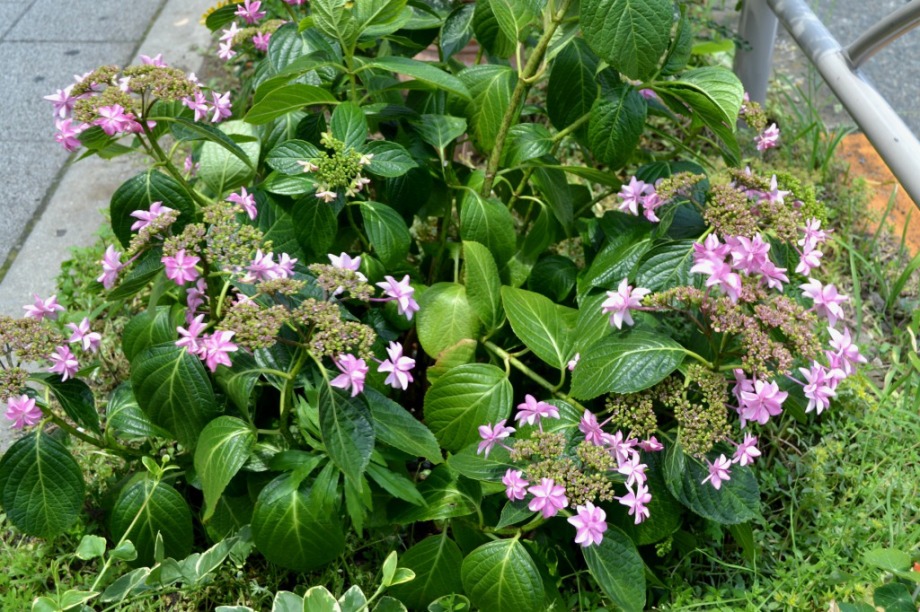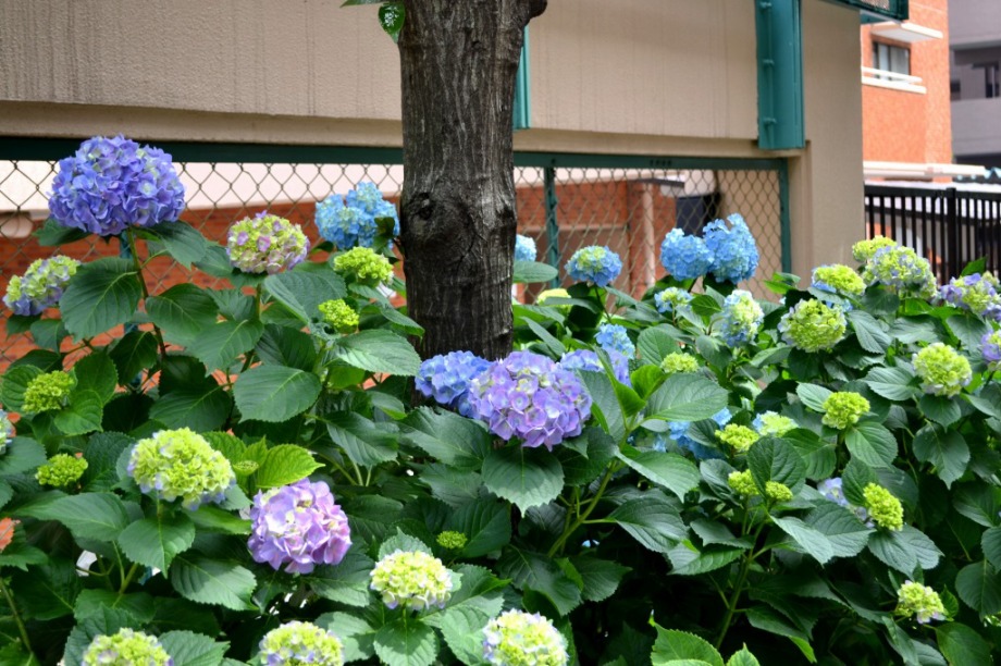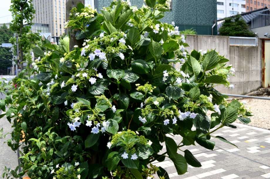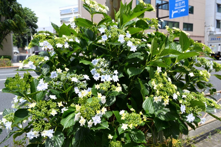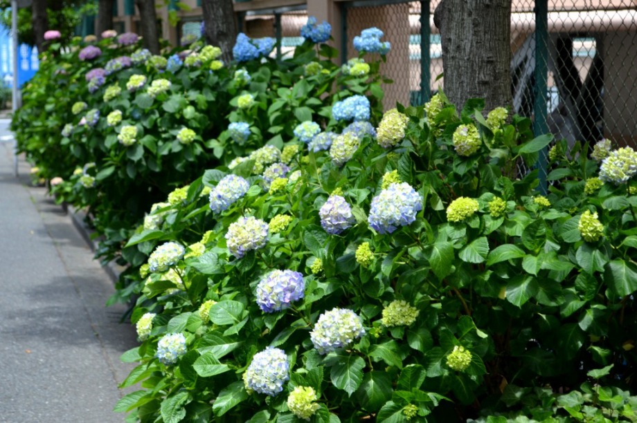 「一言」三田5丁目のバス停の近くにアジサイが咲き出しました。早い花はピンクや青い花を咲かせています。明王院のガクアジサイも見頃になってきて、 綺麗です。願海寺には紫色の花が咲いていました。三田4丁目の交差点の近くには、白やピンクのガクアジサイやトランペットフラワーが咲いています。 慶応大学の横にはドクダミの花がたくさん咲いています。桜の木の下には黄色い小さな花が咲いています。春日神社の前のアジサイも咲き始めました。