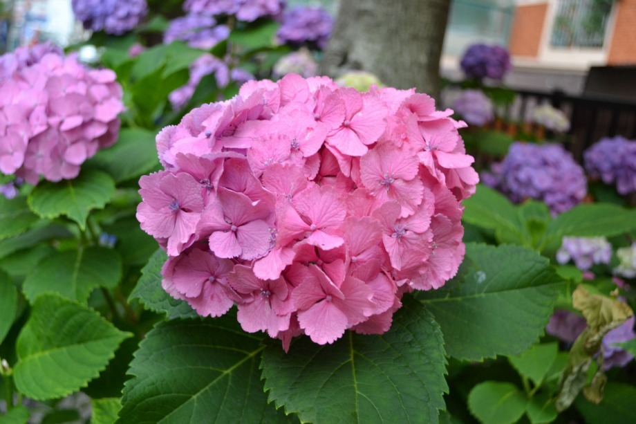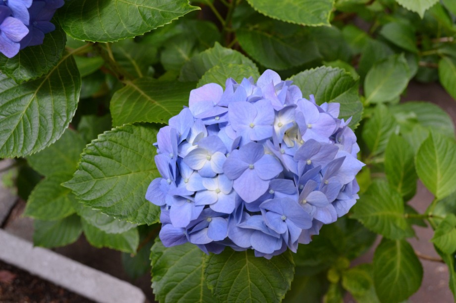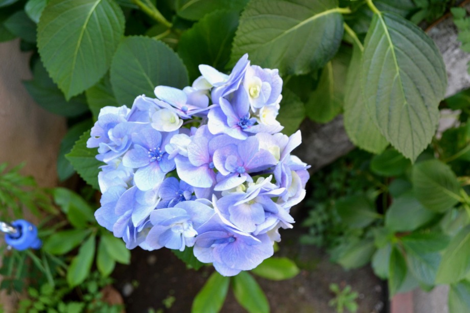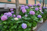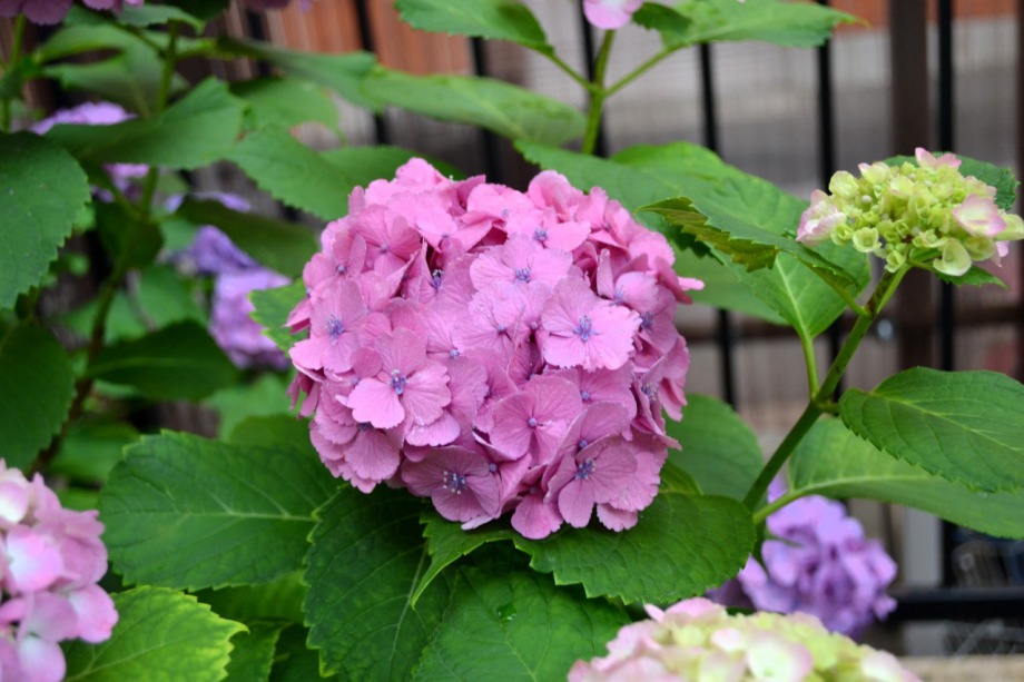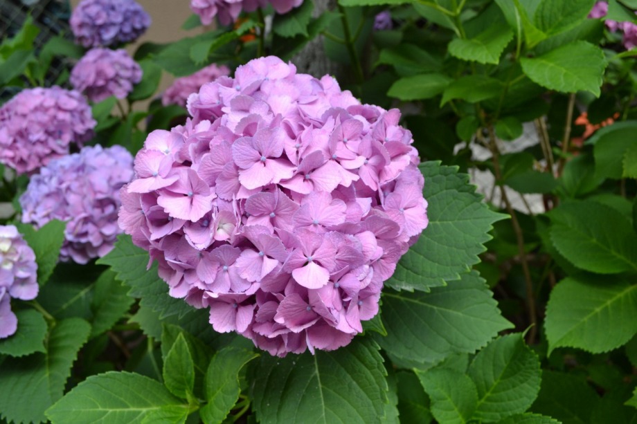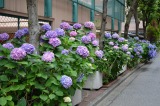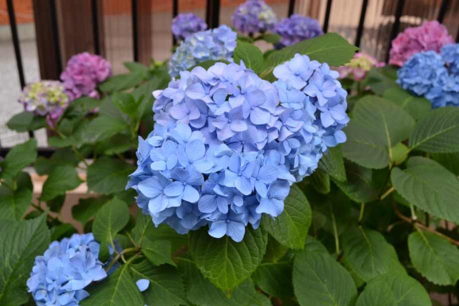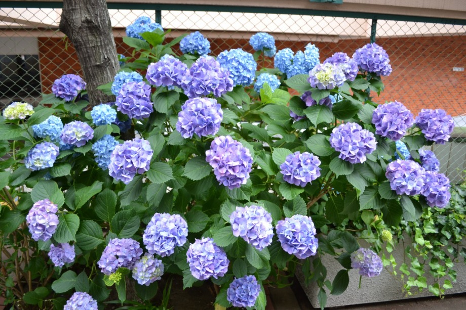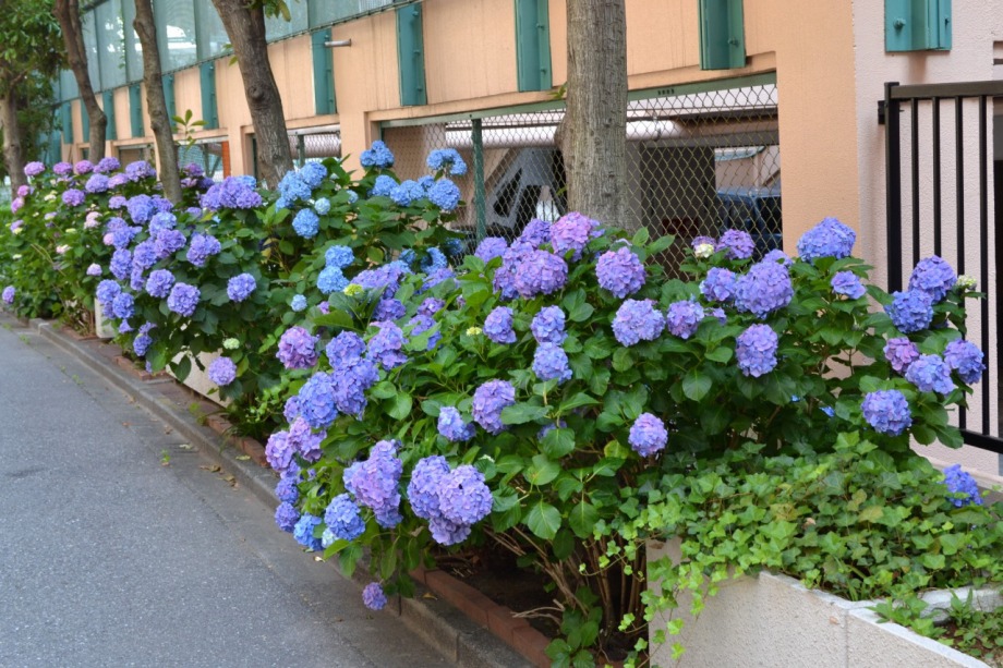 「一言」三田5丁目のマンションの横にたくさん紫陽花が咲いています。色々な色や形の花が通り沿いに今は盛りとたくさん咲いていて綺麗です。