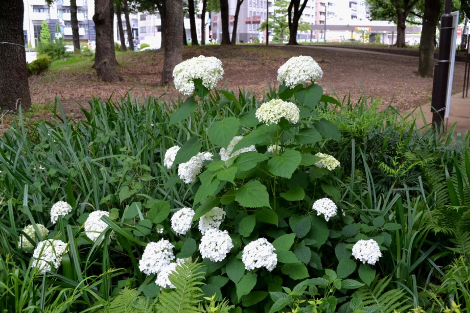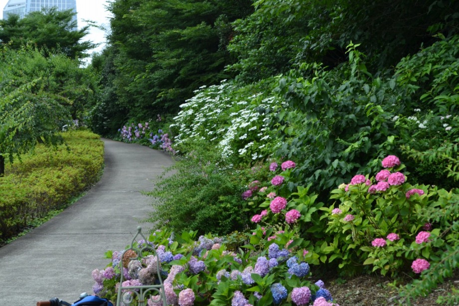 「一言」プリンス芝公園にお花を見に行きました。バラの花も残っていました。紫陽花は大きな木が色々な色の花を一杯につけていて綺麗でした。 人の背丈より高い紫陽花の木がたくさんあり、すべてがお花を一杯につけていんました。特に、色の濃いお花が多い感じがしました。 芝公園にも紫陽花が咲いていましたが、かなりお花が少ない感じがしましたが、紫陽花以外のお花が一杯咲いていました。