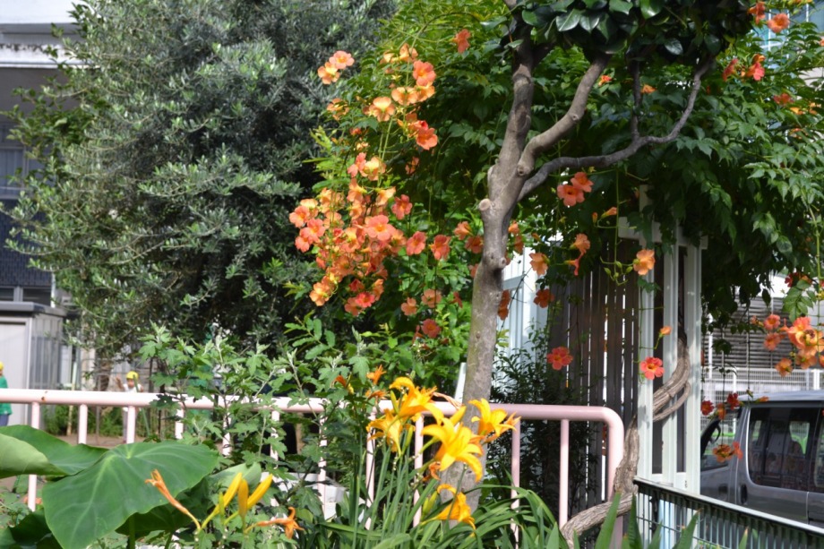 「一言」旧芝離宮恩賜公園に行きました。入り口には七夕の飾りを飾っていました。入り口にノカンゾウが咲いていると言うことで、入ってみると、 庭園のところどころにノカンゾウが咲いていましたが、そろそろ峠を過ぎる感じでした。入り口を入ったところに桔梗が咲いていました。 アジサイも咲いており、ゆっくりと楽しめました。トンボが飛んでいましたので、ゆっくり待って、写真を撮りました。芝保育園にはユリや ノウゼンカズラやアガパンパスの花がたくさん咲いていました。
