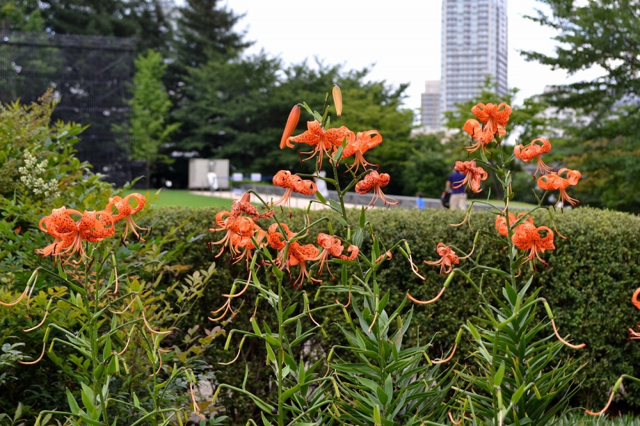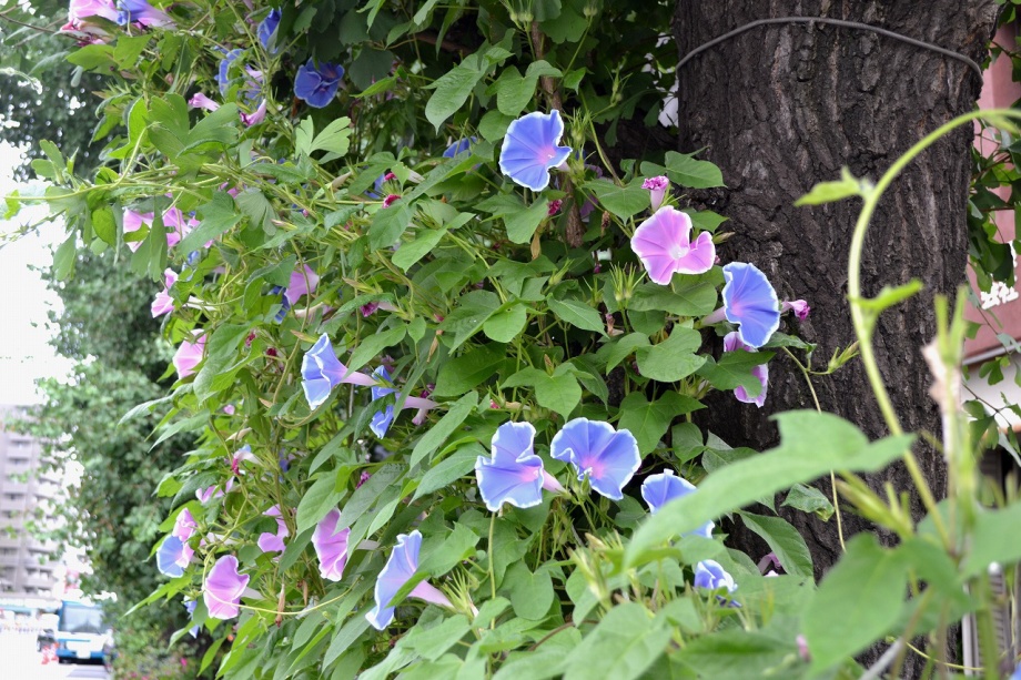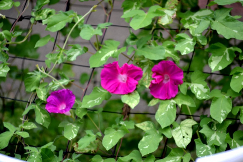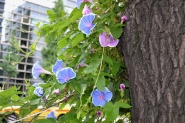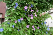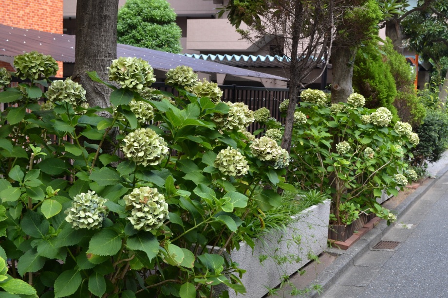 「一言」わが家に朝顔の花が咲きましたので、朝顔の花を探して回りました。南麻布一丁目児童遊園の前には朝顔がたくさん咲いていました。 東京ミッドタウンの横の庭には小さい花ですが色々な朝顔の花が咲いていました。また、朝顔以外のお花が色々と咲いていました。 お花の写真を撮っていると黒い揚羽蝶が来ましたので、写真を撮りました。三田5丁目のマンションの横の紫陽花は緑の花になりました。