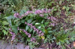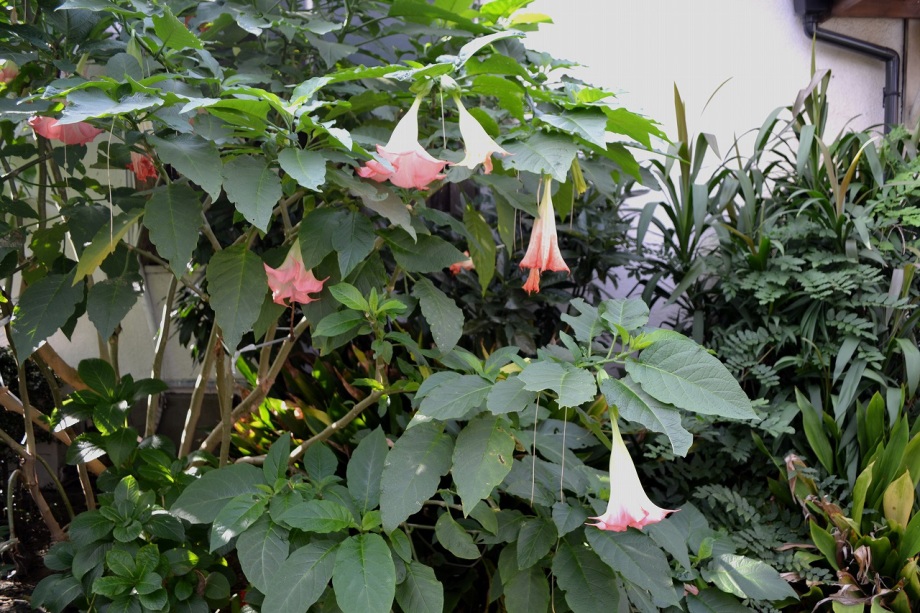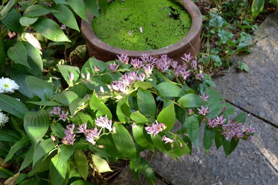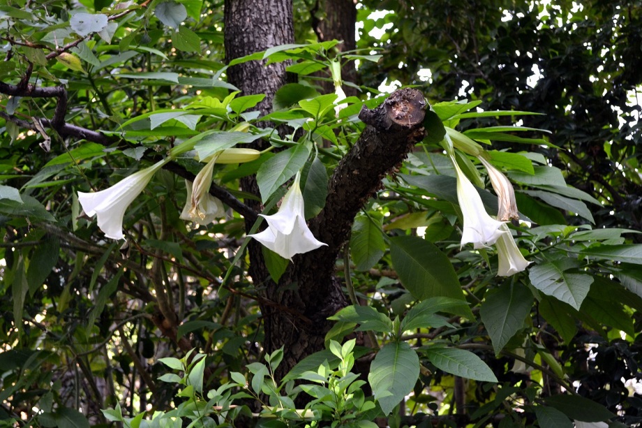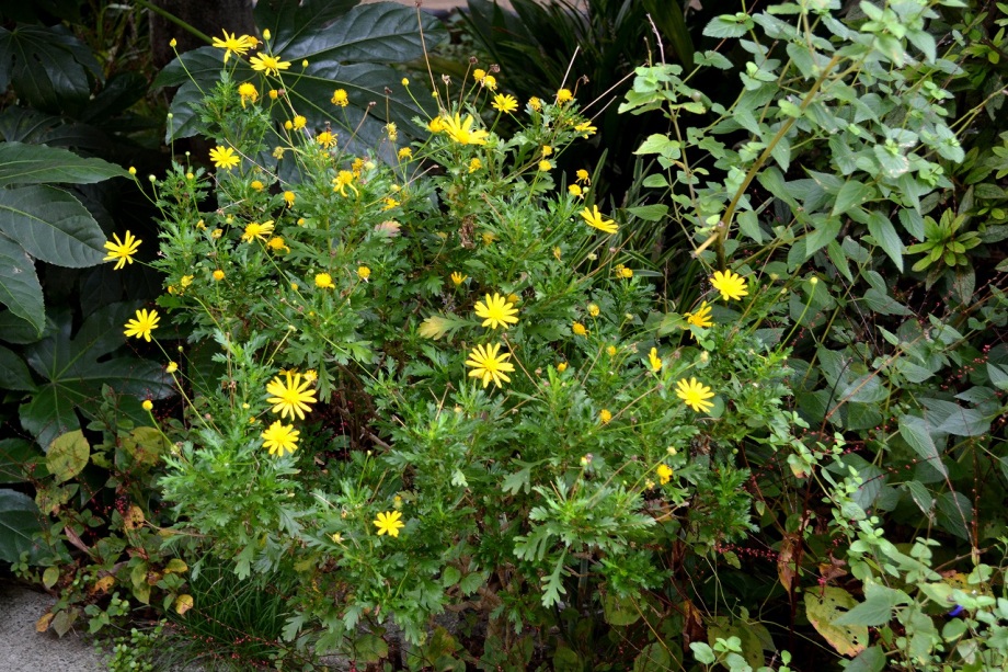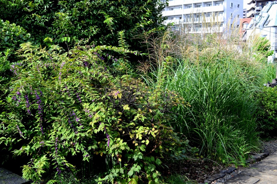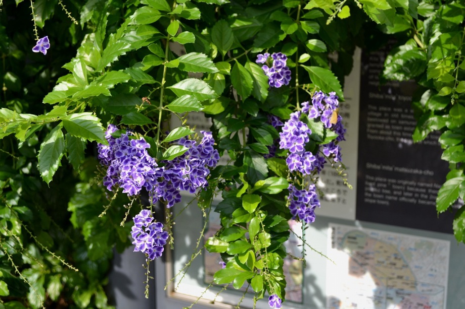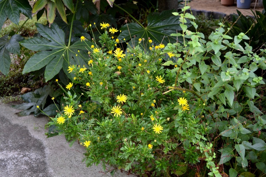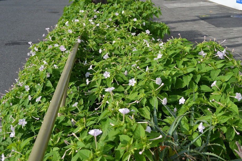 「一言」三田5丁目の龍源寺にはトランペットフラワーが咲いていました。不如帰や白い野菊なども咲いていて、秋らしい感じでした。塀の上にはピラカンサスの実が たくさんなっていました。願海寺には、黄色い菊が咲いていました。ススキも大きくなっており、トランペットフラワーの花が咲き、紫式部の実がなっていました。 国道沿いにはおしろい花がたくさん咲いていました。豊岡いきいきプラザの前には不如帰やデュランタが咲いていました。また、サザンカの花も咲き始めました。