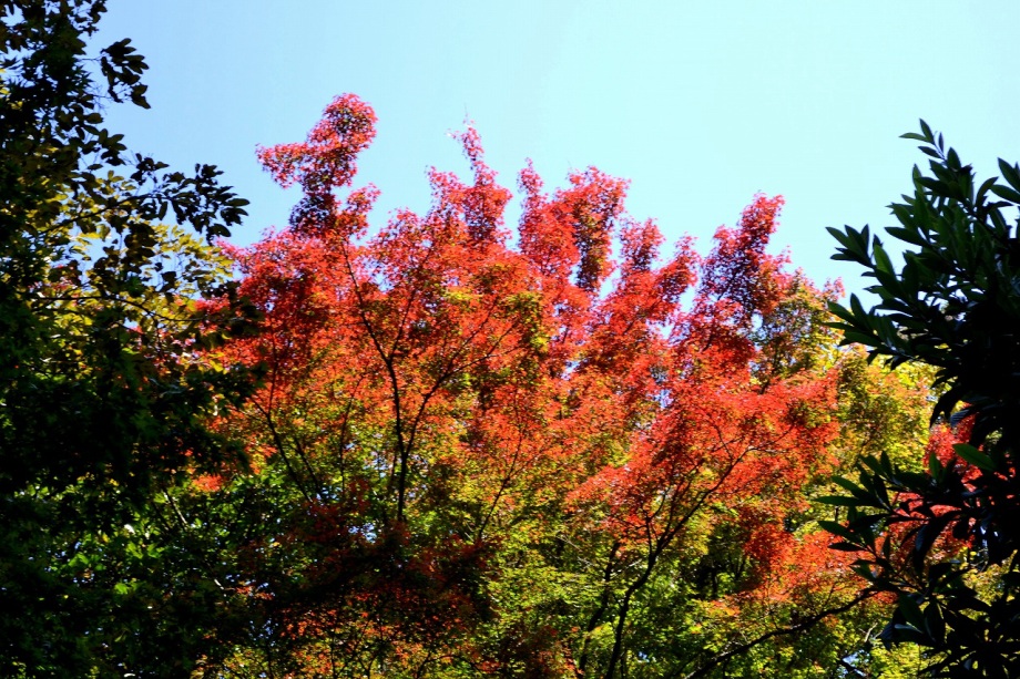 ハナミズキも葉が紅くなっていました。ハナミズキの紅葉はなかなか鮮やかな赤にはなりませんが、日差しの当たりかたで綺麗になります。西蔵院