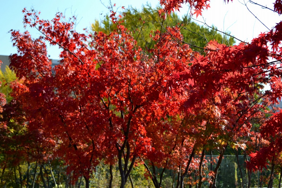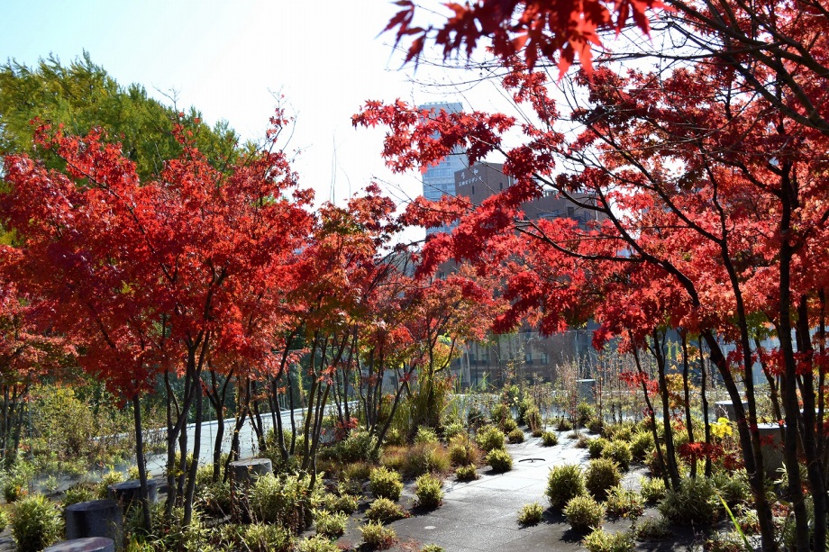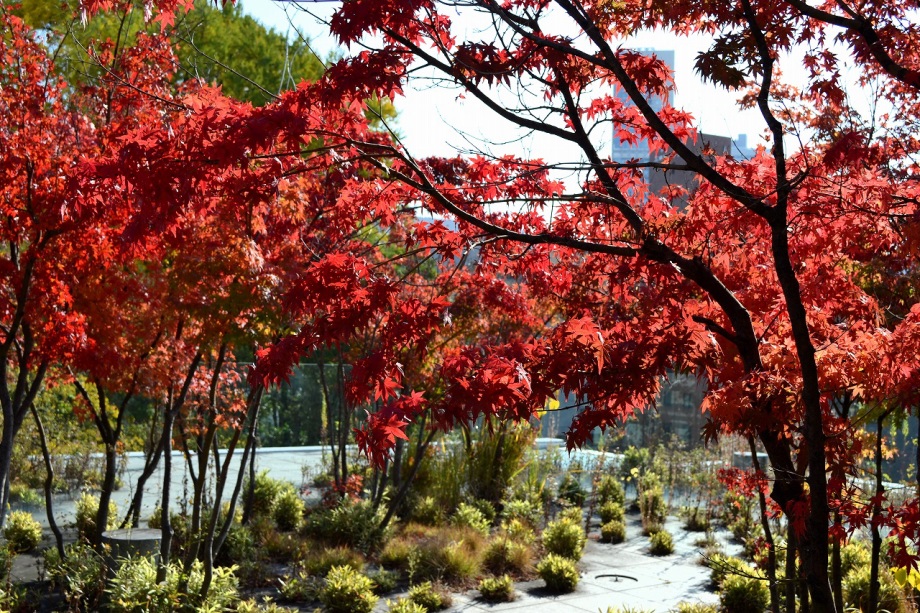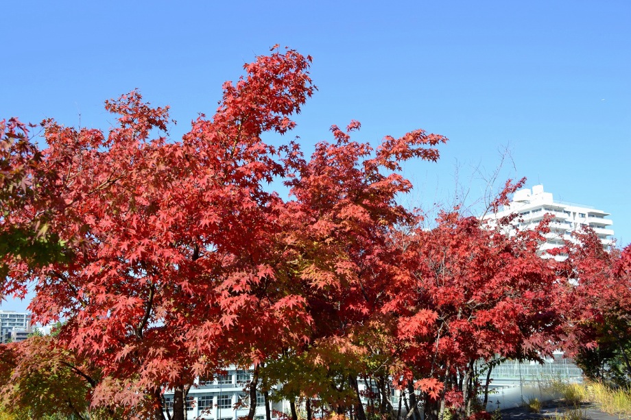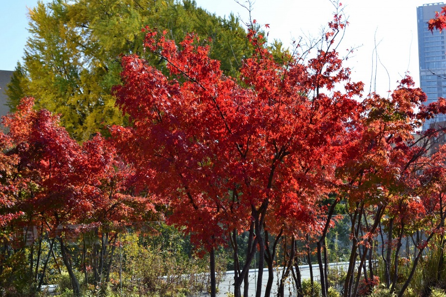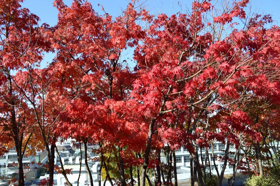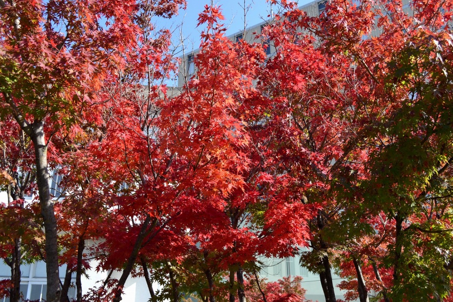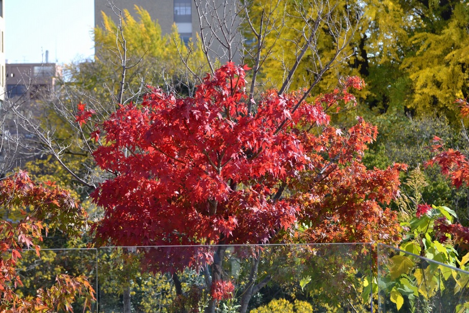 「一言」今日は慶応大学の屋上にある紅葉が紅くなってきましたので、写真を撮りに行きました。大学のイチョウはまだ黄葉していませんでしたが、紅葉は