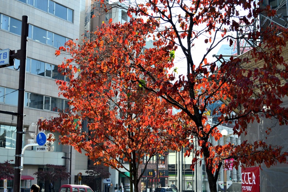 かなり紅くなっていて、綺麗でした。まだ、木全体が真っ赤になっている状況ではありませんが、かなり紅い部分が多くなっていました。三田通リの