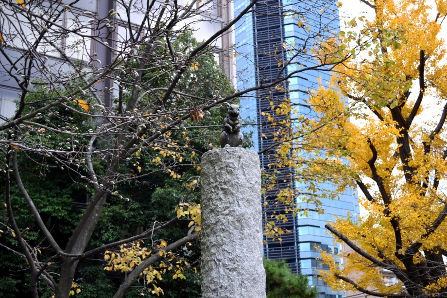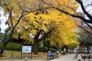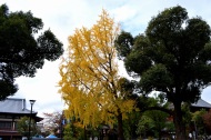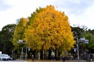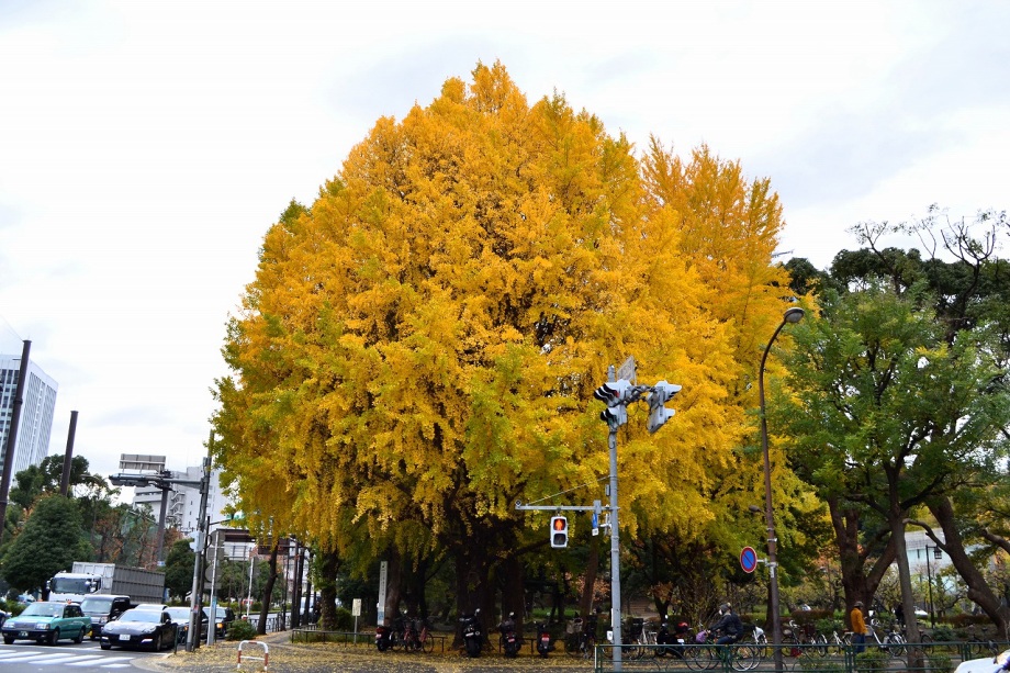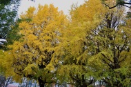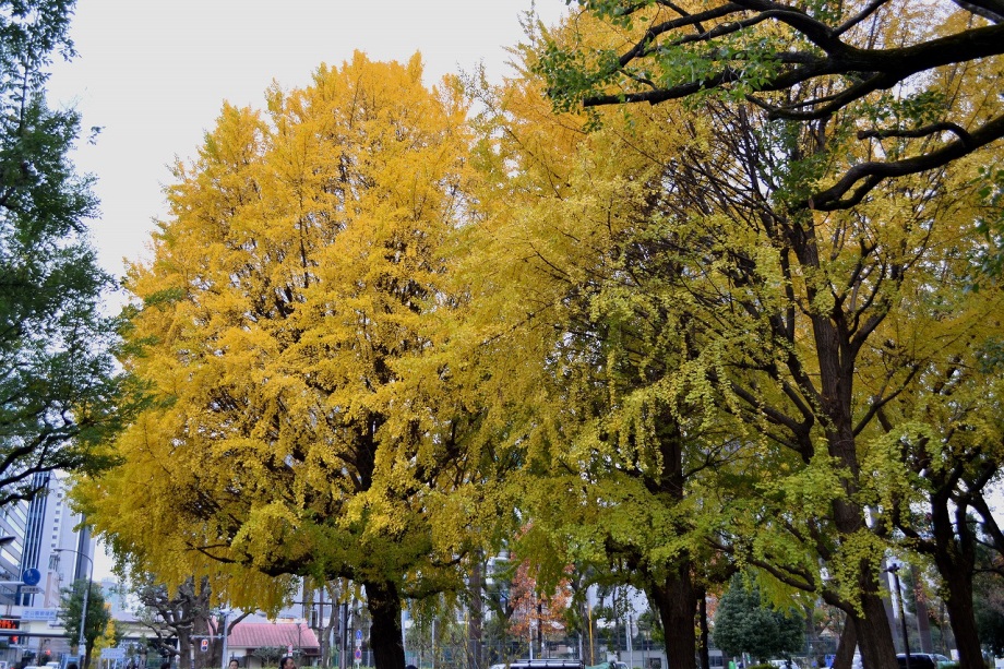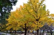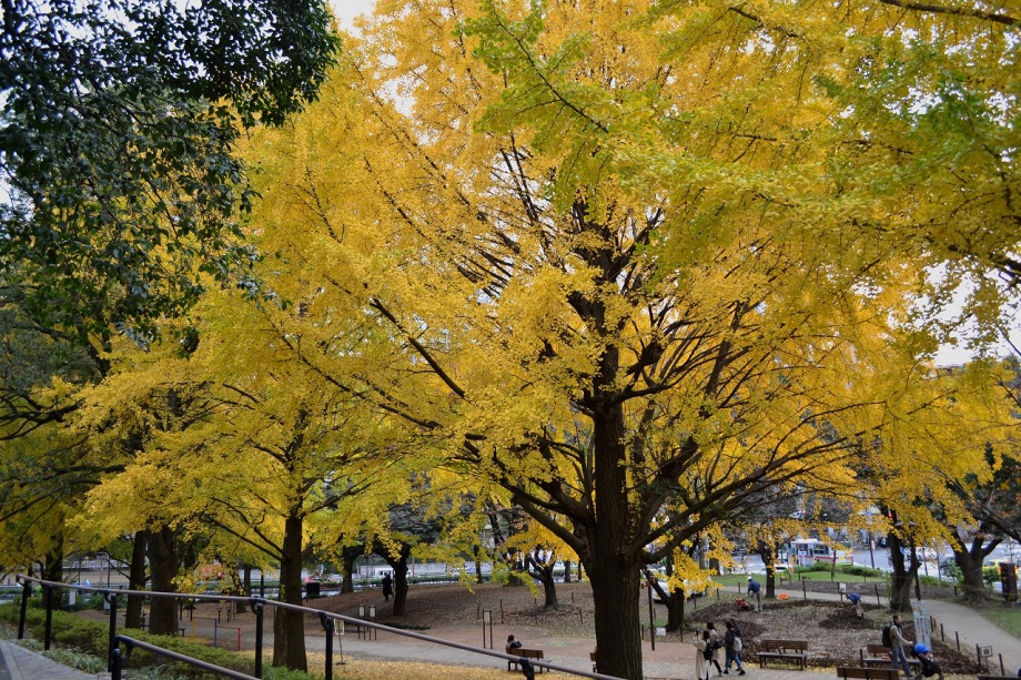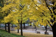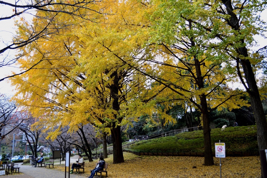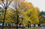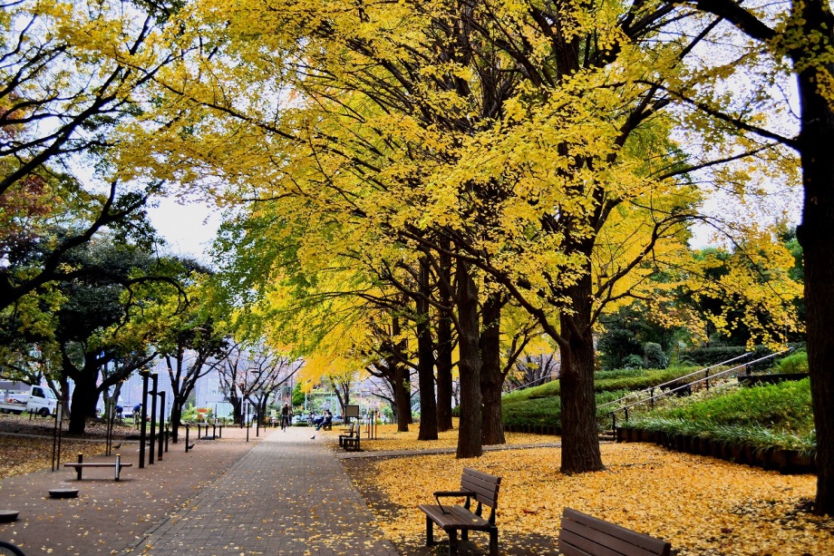 「一言」芝公園のイチョウが黄色くなってきました。公園の横の非常に大きなイチョウの木も良い色になっています。足元も、イチョウの葉が落ちていて、 黄色な絨毯のようになっています。着物を着た若い女性が集まって、イチョウの木を背景に写真を撮っていました。