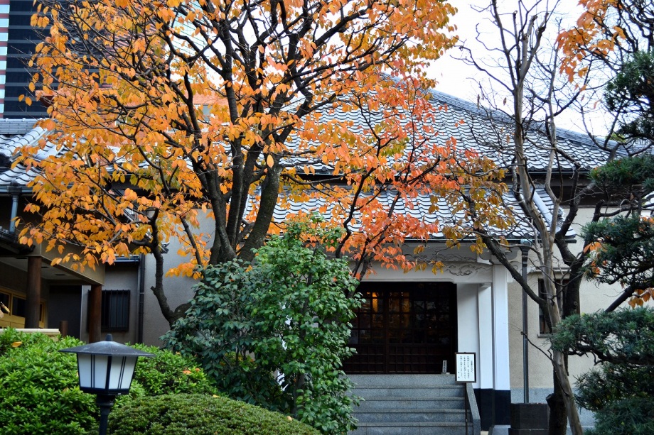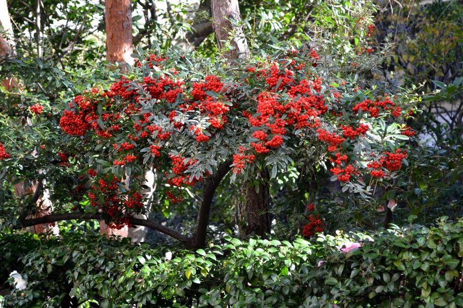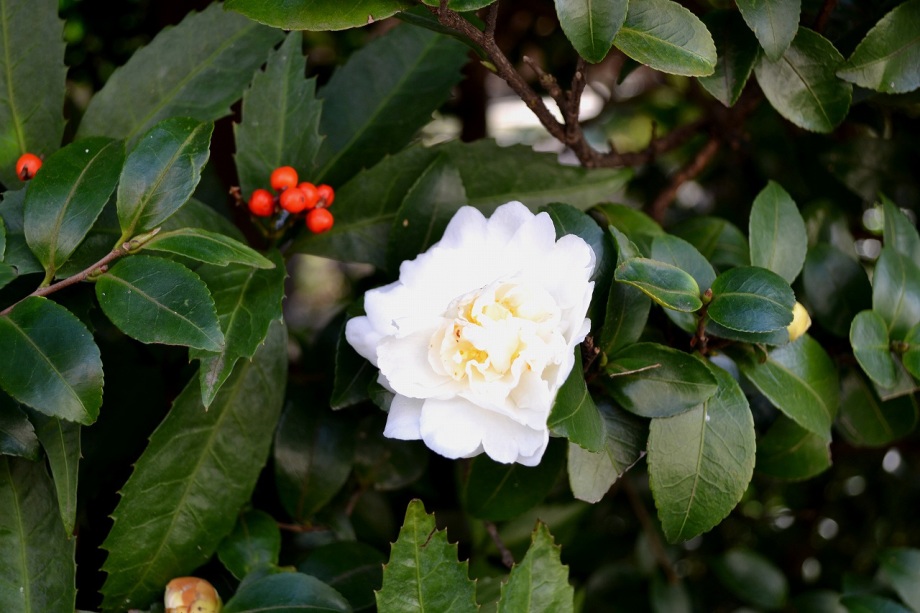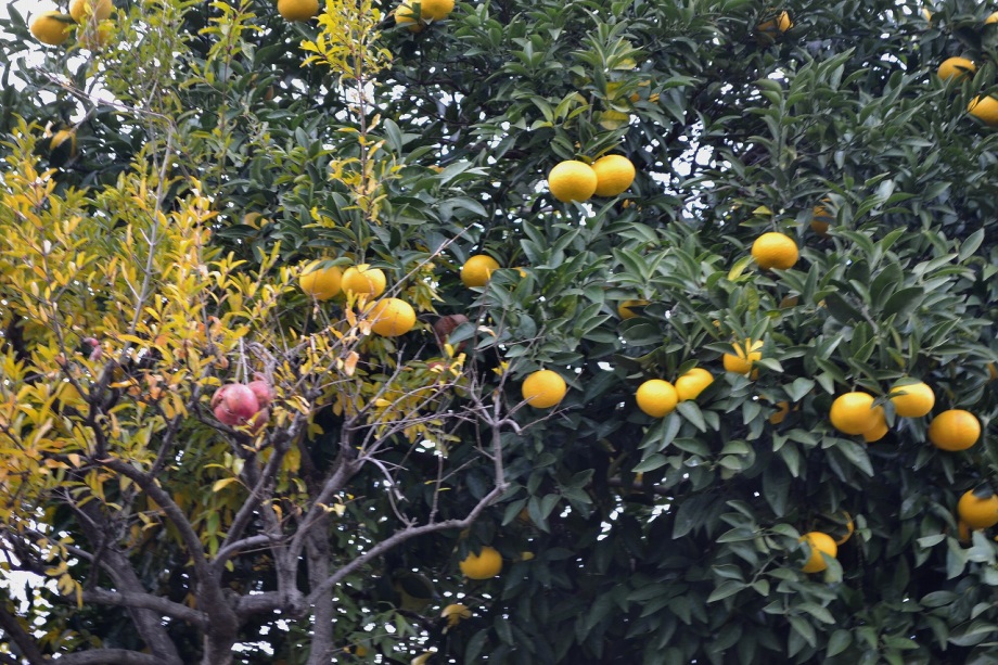 「一言」三田5丁目の龍源寺にはサザンカや千両万両、野菊などが咲いていました。願海寺には大きな果物の木がいっぱい実をつけていました。
