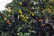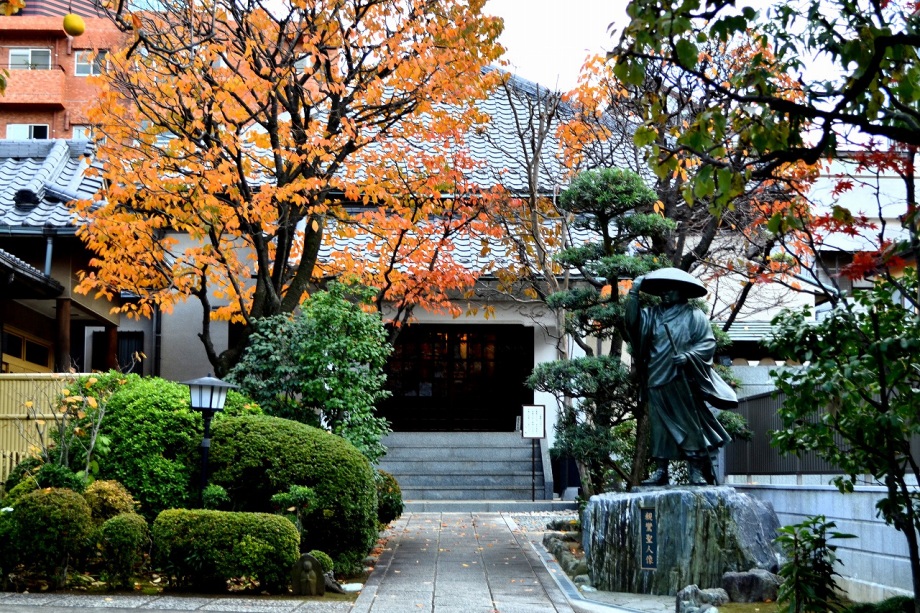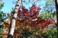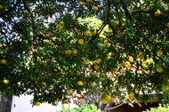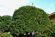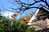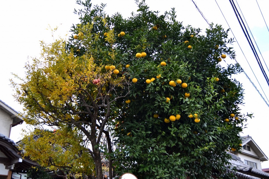 明福寺には本堂の前にある黄色くなった木の葉が良い雰囲気を作っていました。玉鳳寺には色々な木を接ぎ木した木に色々な実が