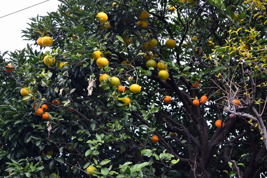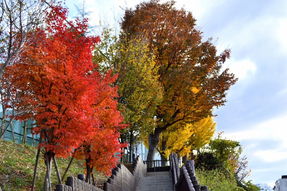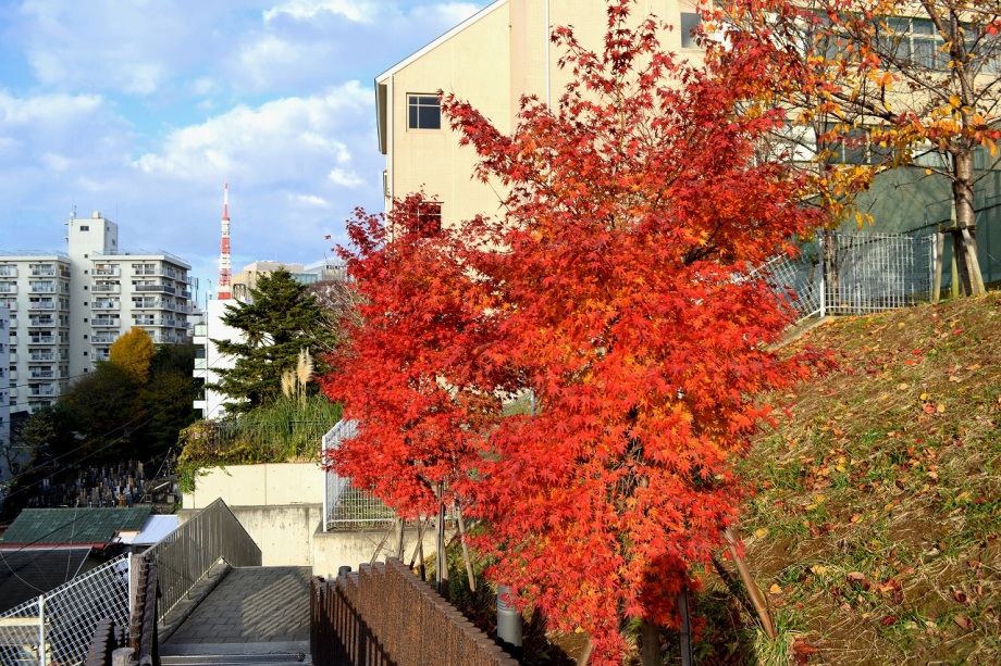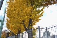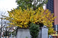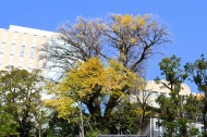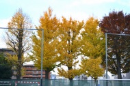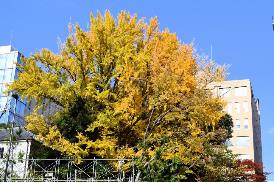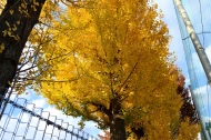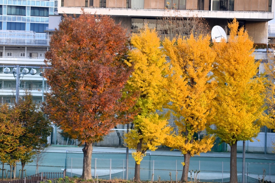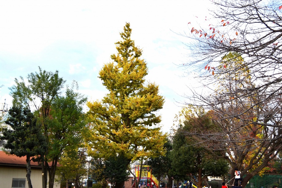 なっていました。亀塚公園には柿やミカンなどの実がなっていました。慶応大学の正門の裏の大きな木も黄色になりました。港中学校の
