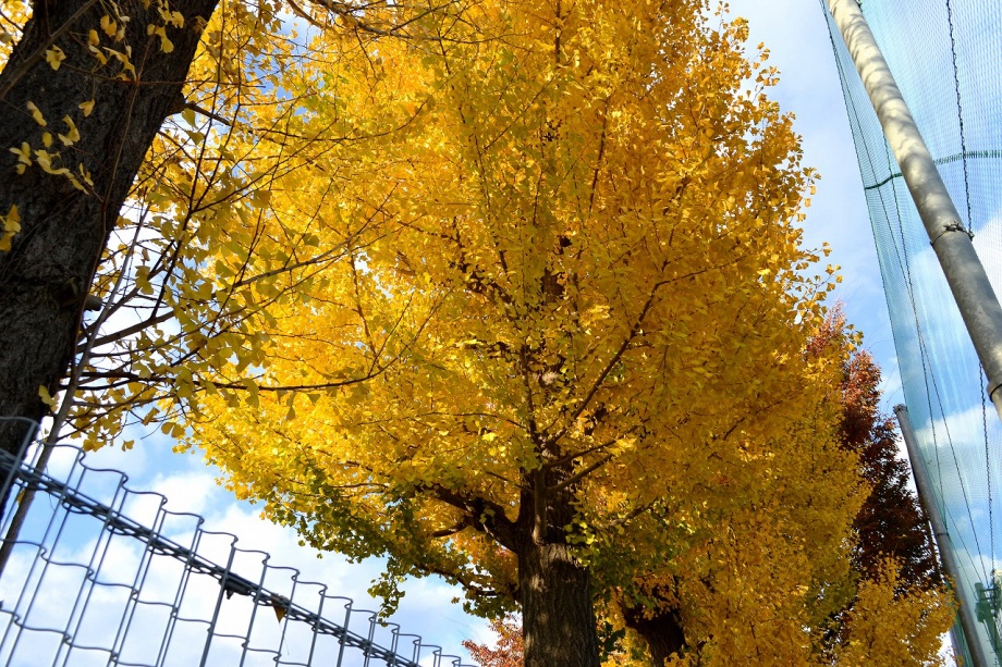 銀杏が良い色になりました。まだ小さいですが、真っ赤に紅葉した木が綺麗でした。