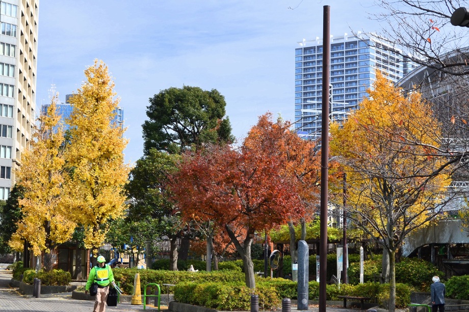 「一言」今日はCC大学のメンバーの集まりがあり、芝浦に行ったので、途中の本芝公園や芝浦支所で写真を撮った。イチョウやもみじが見頃でした。 また、田町駅前の第一京浜のイチョウが見頃でした。帰りには太陽の光がイチョウに当たって、鮮やかな感じでした。