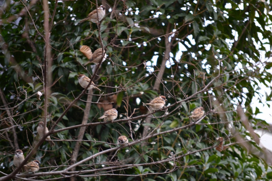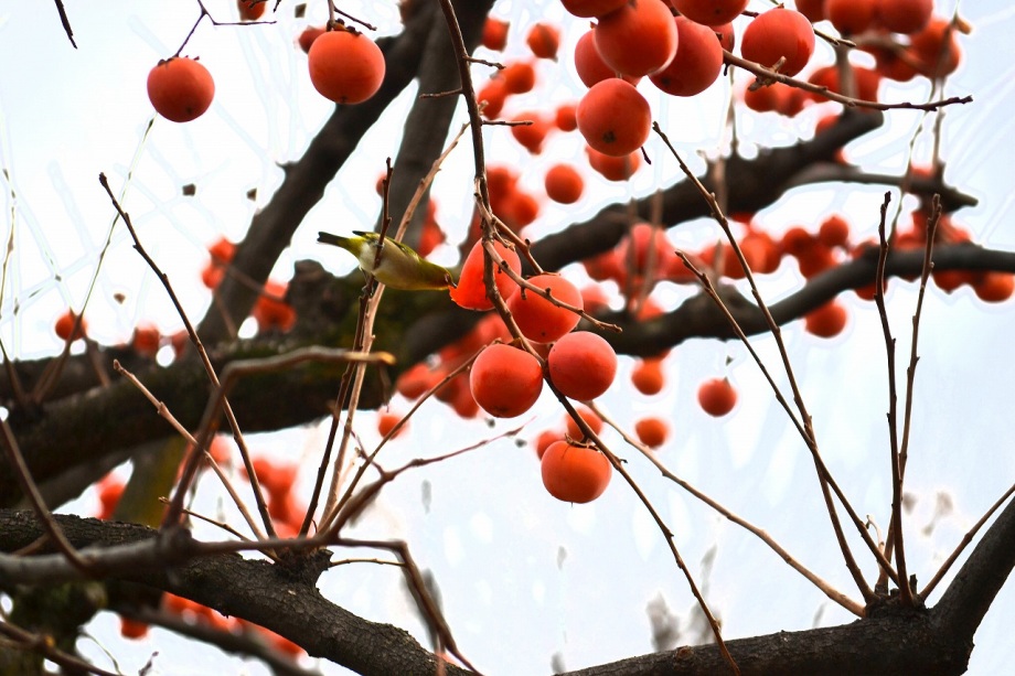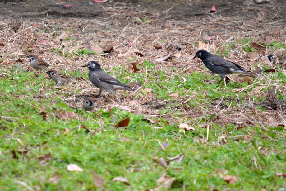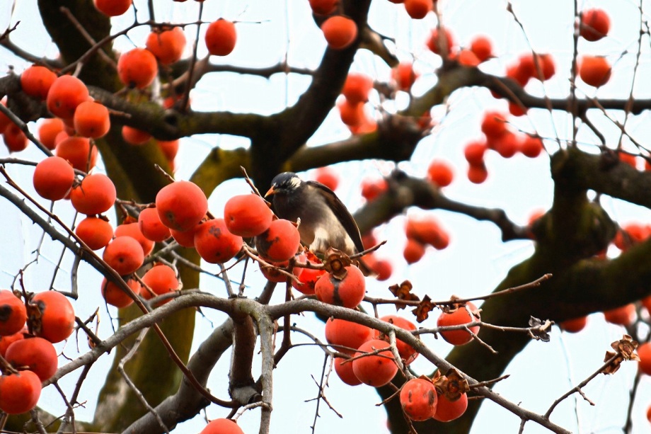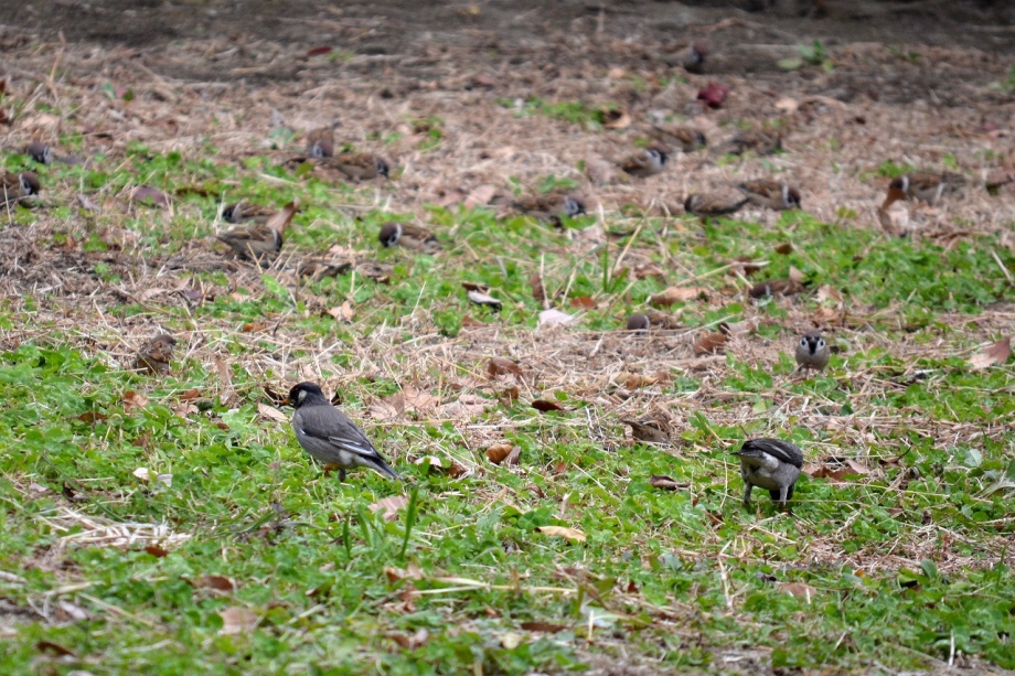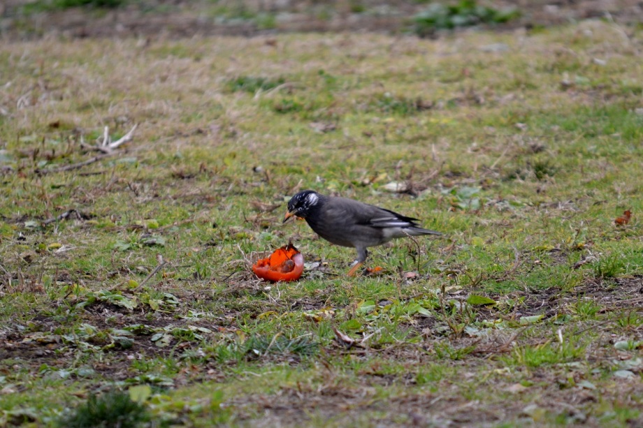 「一言」三田台公園の柿の木に、色々な鳥が柿の実を食べに来ていたので、写真を撮りに行った。行く時は晴れていたが、曇ってきたので、明るい写真は 撮れなかったが、一応、写真を撮った。芝にはムクドリやスズメが集まっていて、仲良く餌を食べていた。スズメは木に鈴なりになってとまっていた。