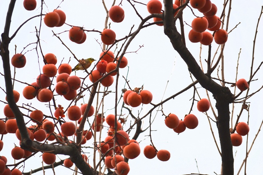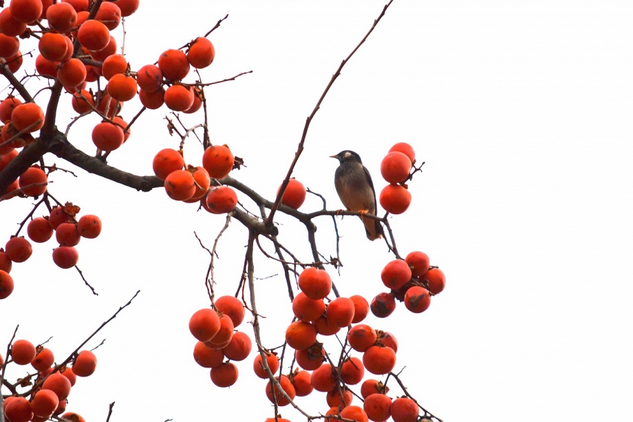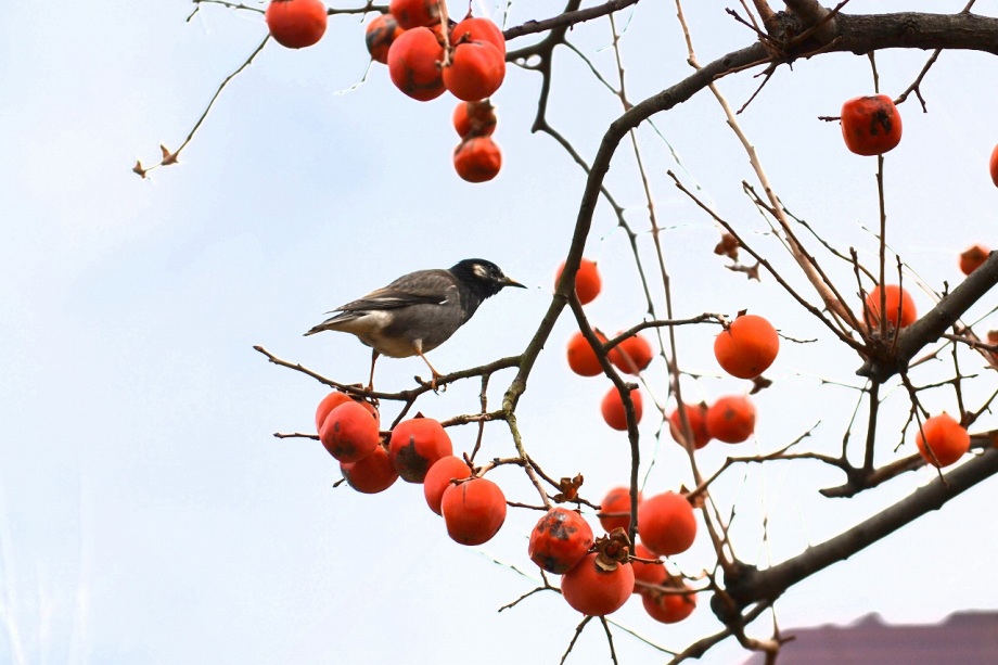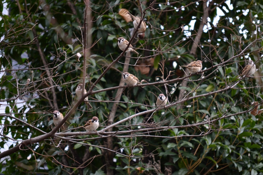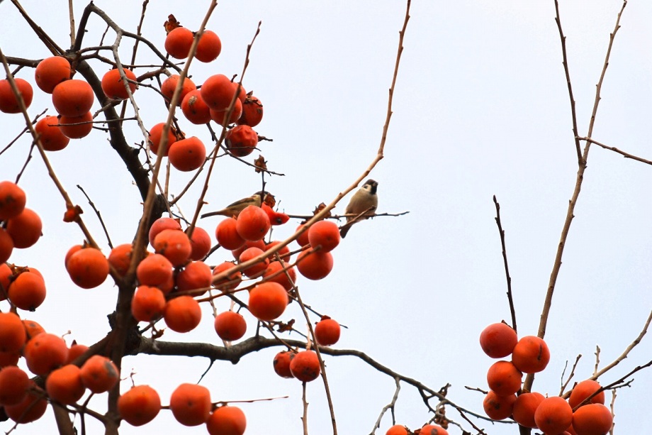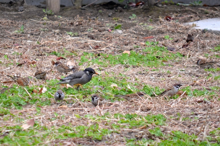 「一言」三田台公園の柿の木に、色々な鳥が柿の実を食べに来ていたので、写真を撮りに行った。行く時は晴れていたが、曇ってきたので、明るい写真は 撮れなかったが、一応、写真を撮った。芝にはムクドリやスズメが集まっていて、仲良く餌を食べていた。スズメは木に鈴なりになってとまっていた。