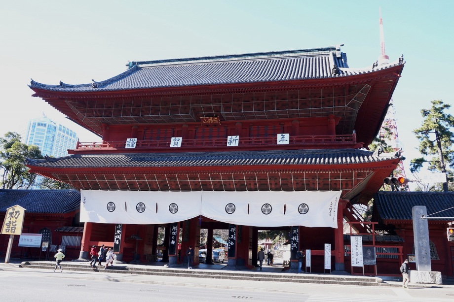 「一言」2日に増上寺に初詣に行きました。境内の横には紅梅が咲き出していました。隣の宝珠院では七福神めぐりの案内がありました。2日と3日に