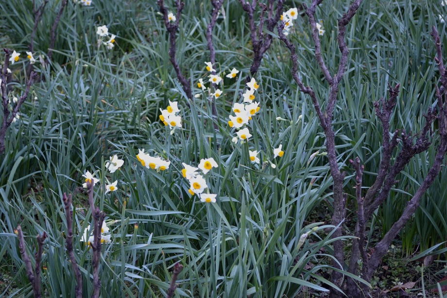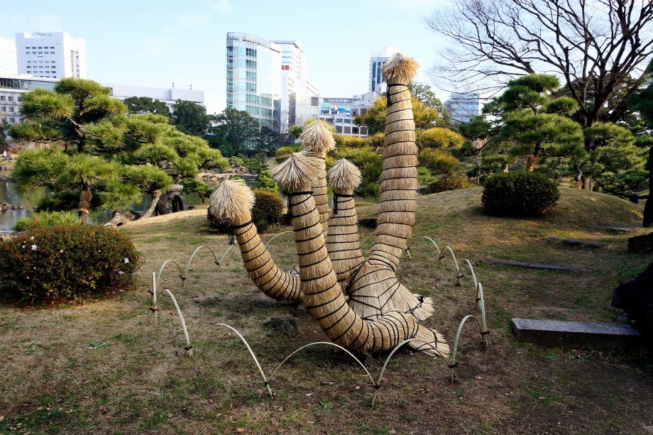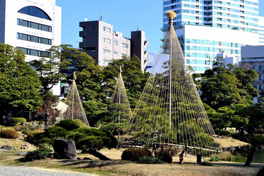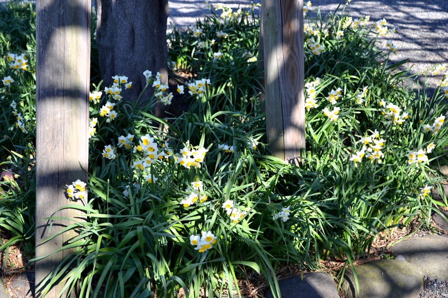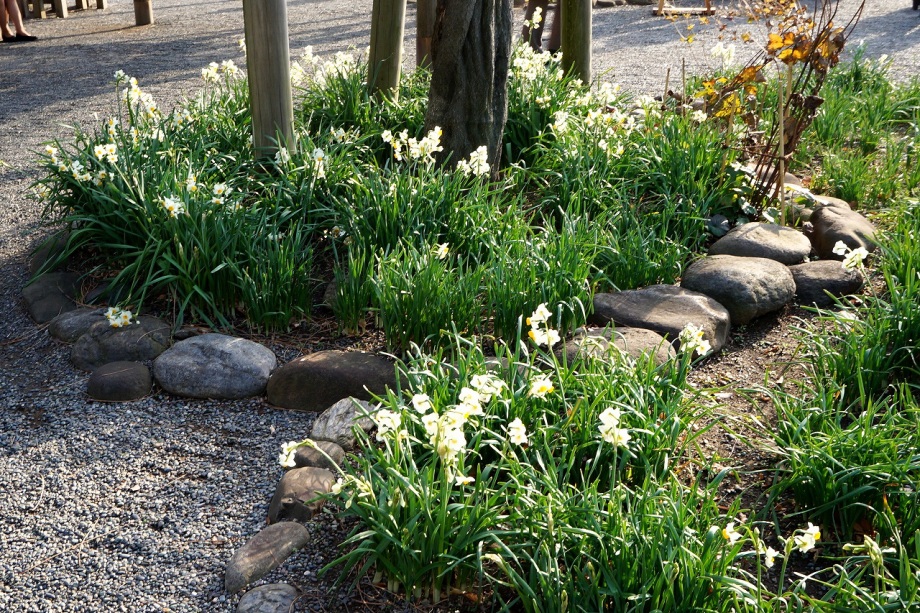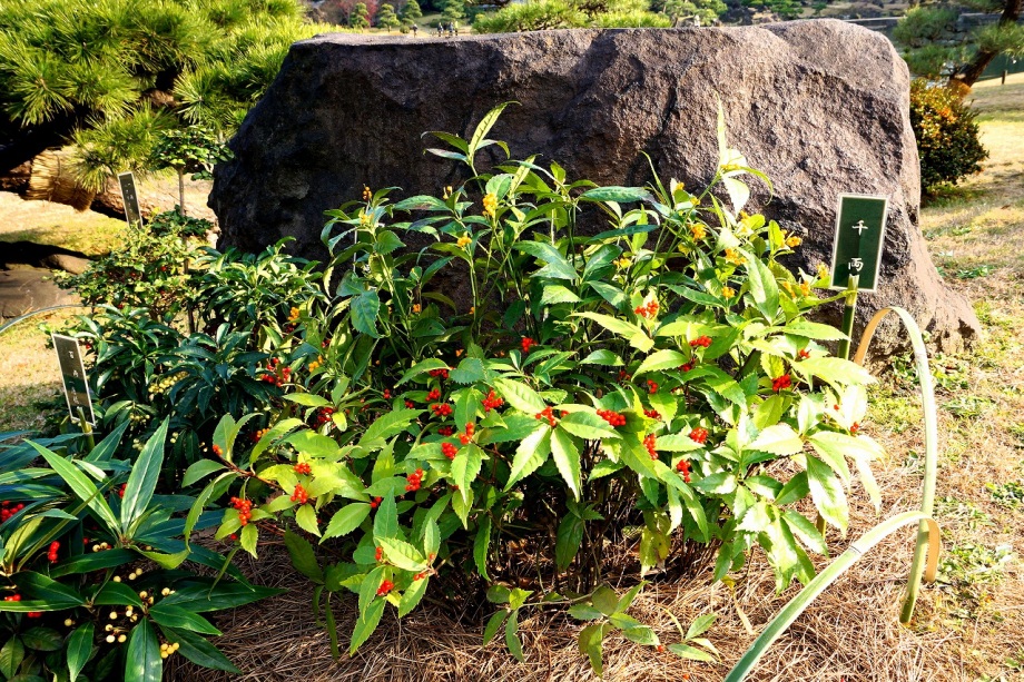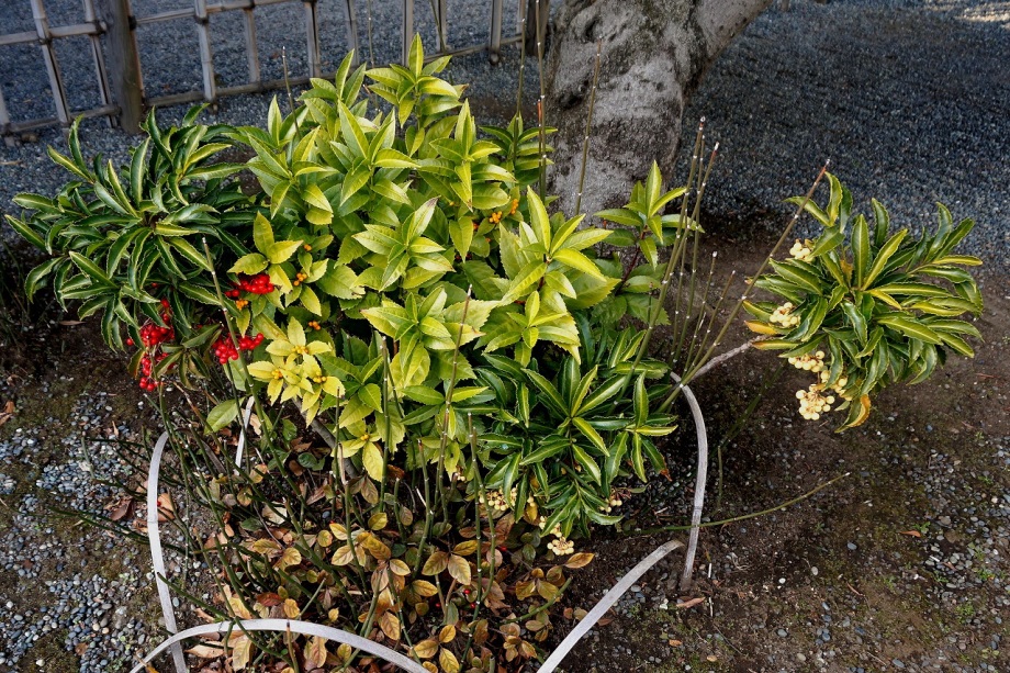 旧芝離宮に行くと三番叟を演じていました。鼓の良い音色を聞くとお正月という感じがしました。水仙が咲いていました。千両、万両と一緒に百両、