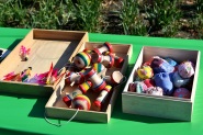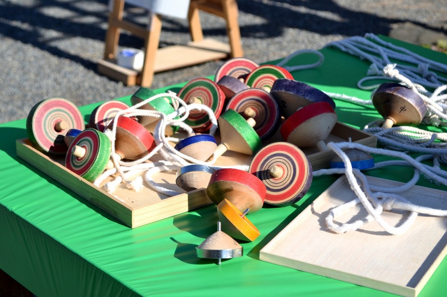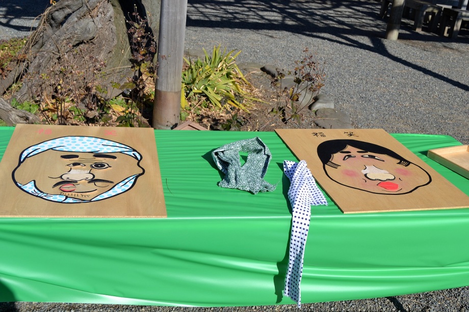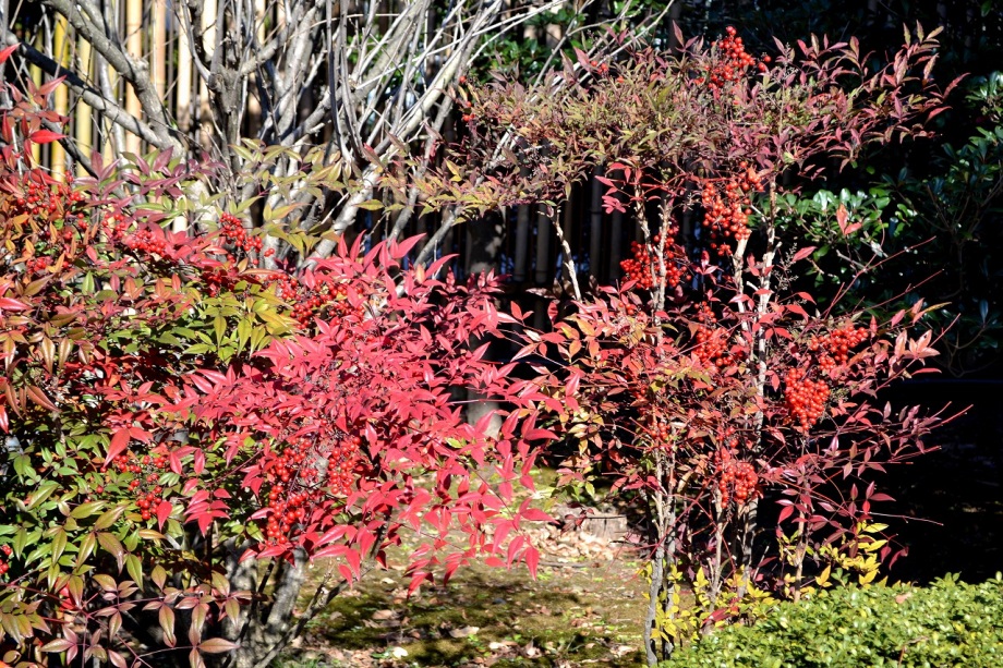 知りました。羽子板やこま、けん玉、福笑いなど昔の遊びが並べられて、楽しめるようになっていました。また、南天の葉が真っ赤になっていました。