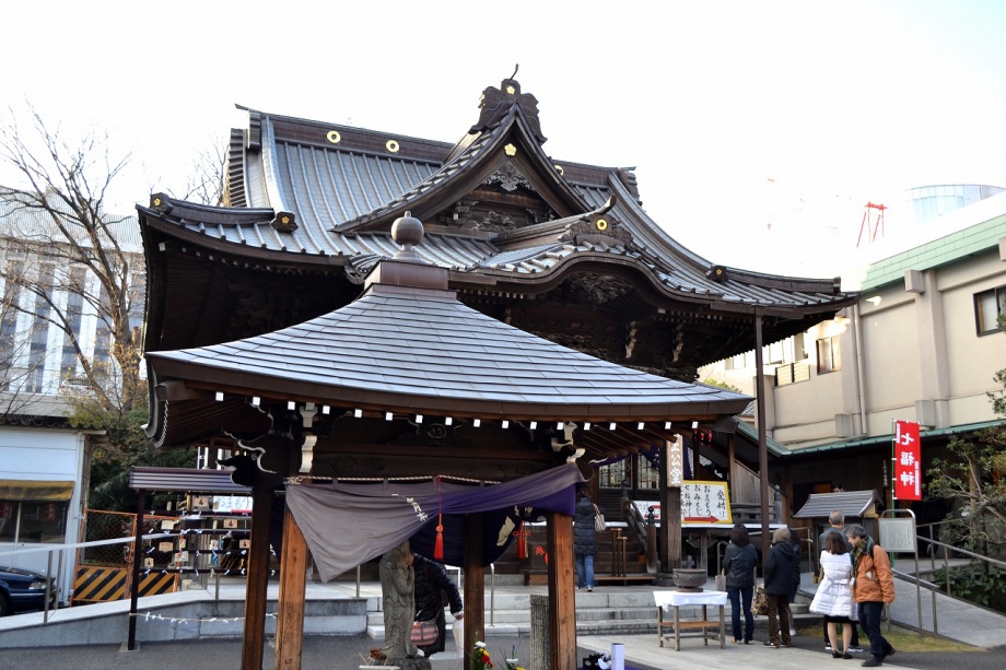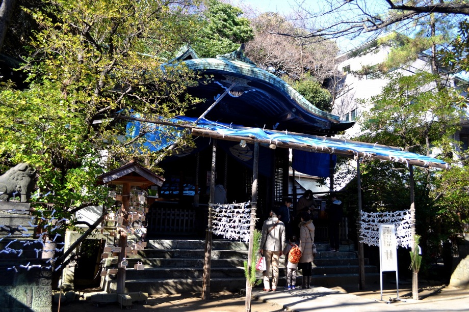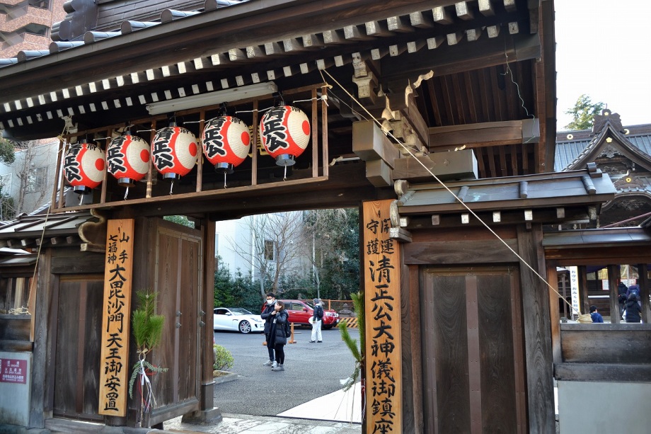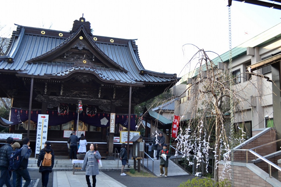 鳥が飛んできていました。「朝顔に釣瓶取られてもらい水」の井戸がある薬王寺には白梅が咲き始めていました。覚林寺では七福神めぐりの紹介や七つ