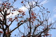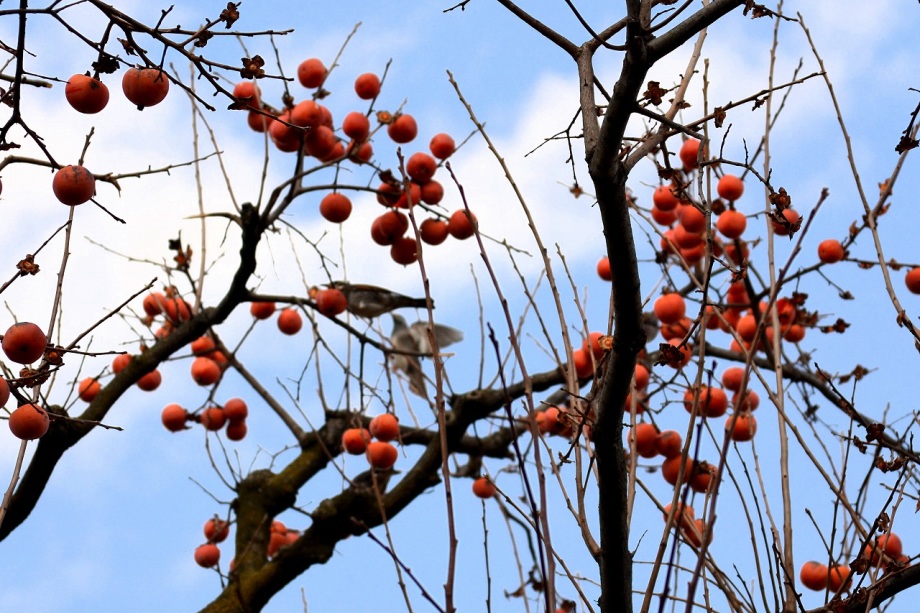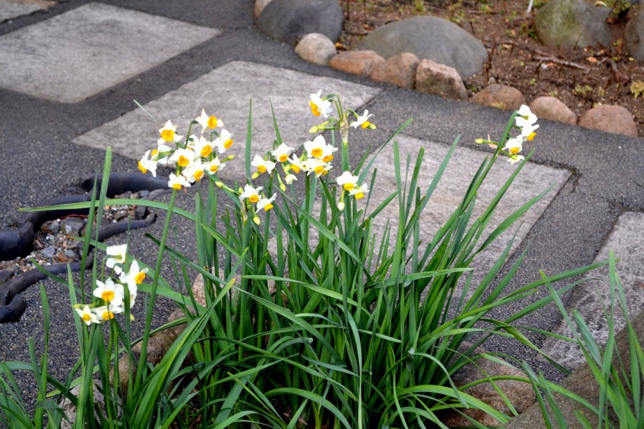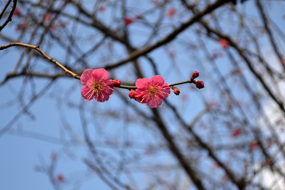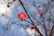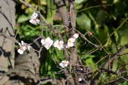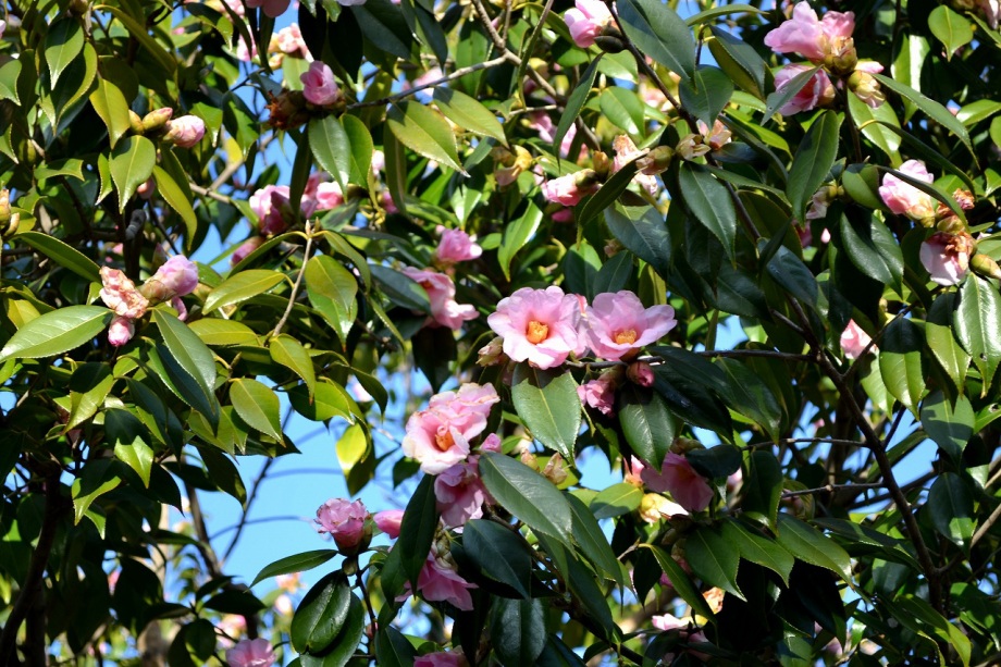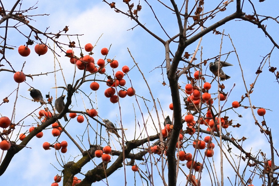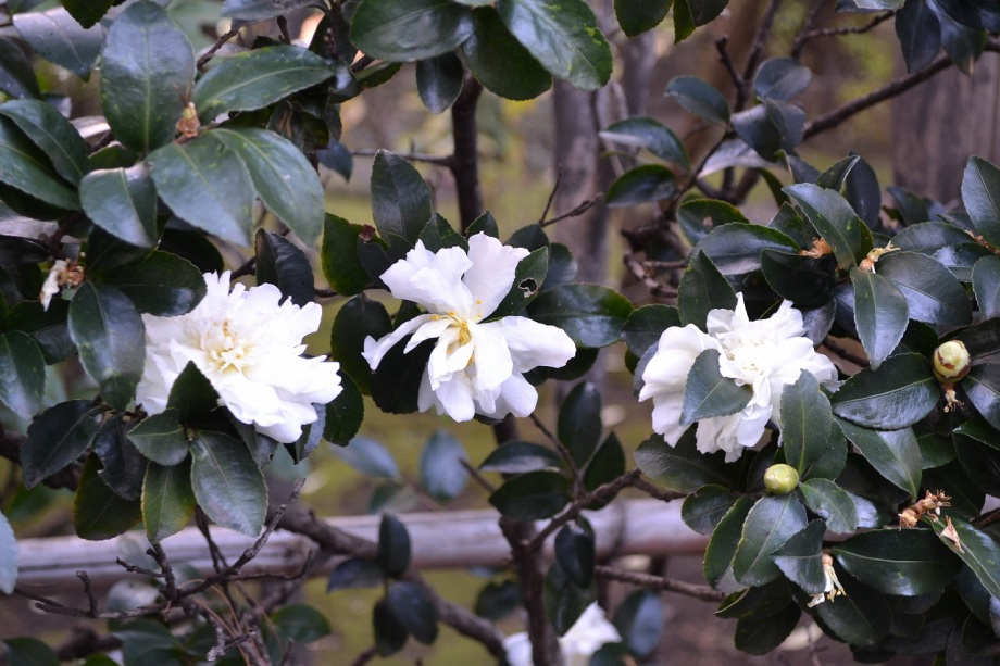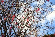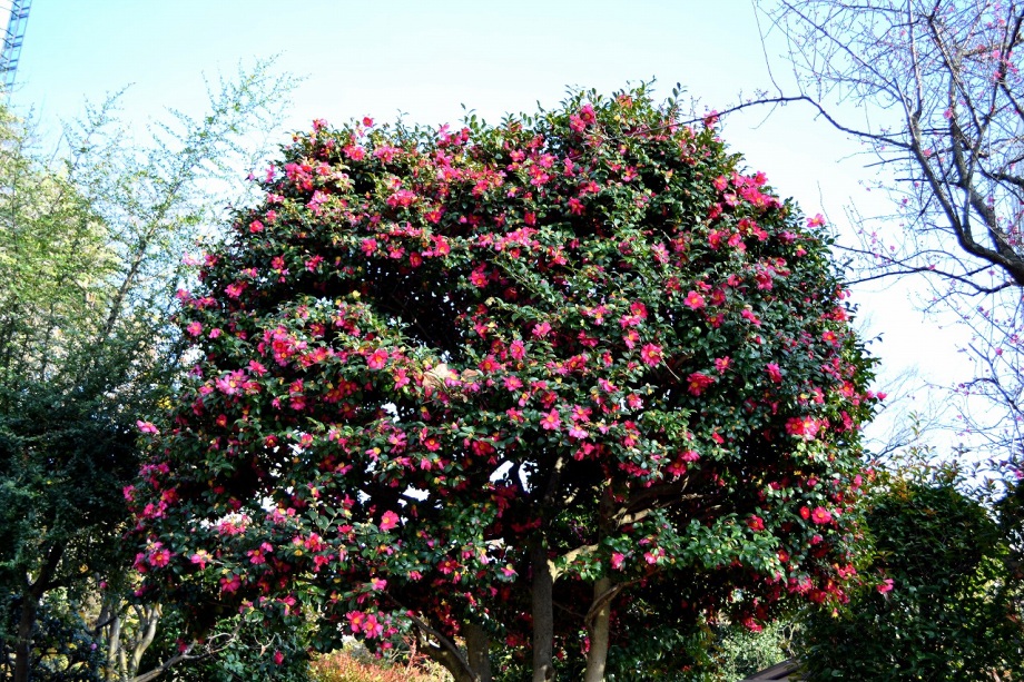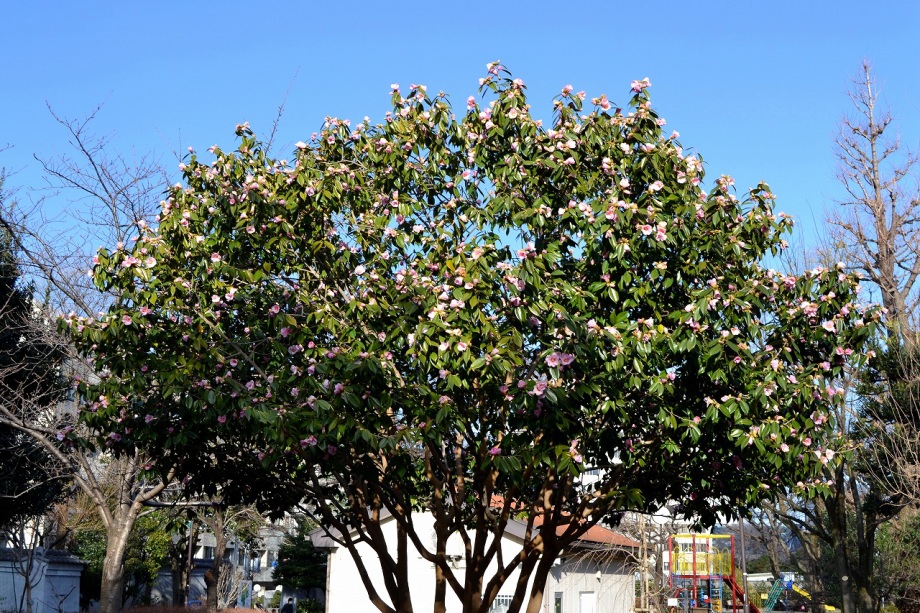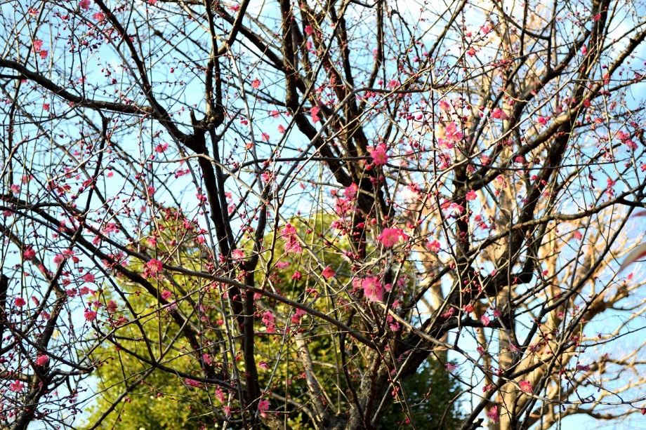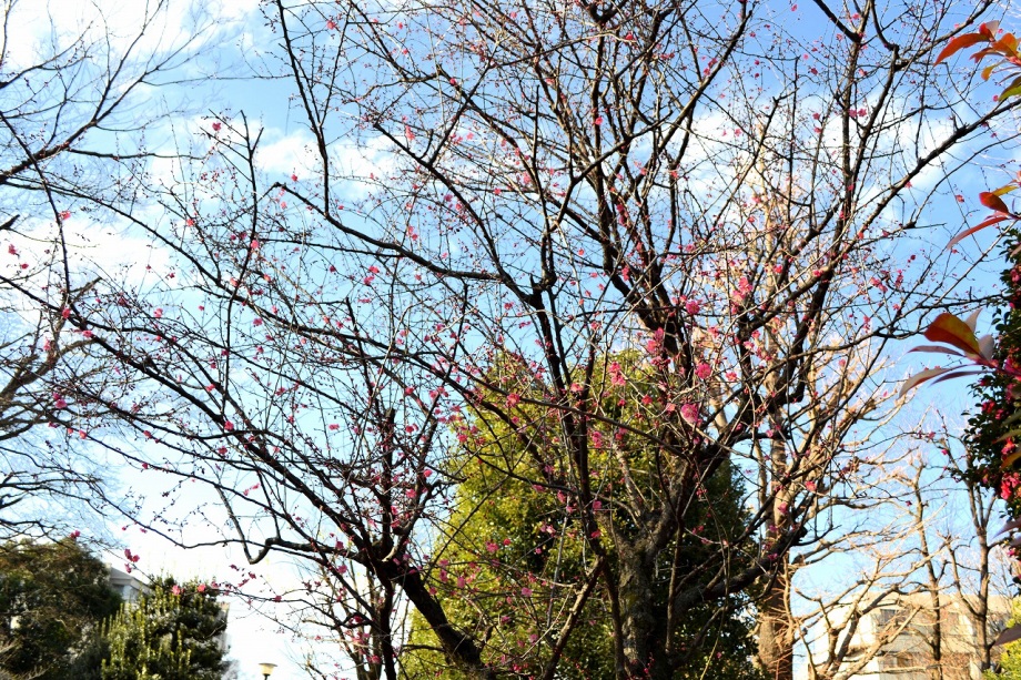 亀塚公園には紅梅が咲き始めていました。水仙や椿も咲いていましたが、地面には椿の花がたくさん落ちていました。三田台公園の柿の木にはたくさん