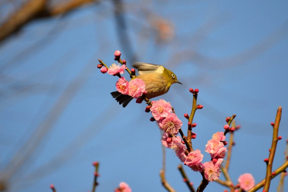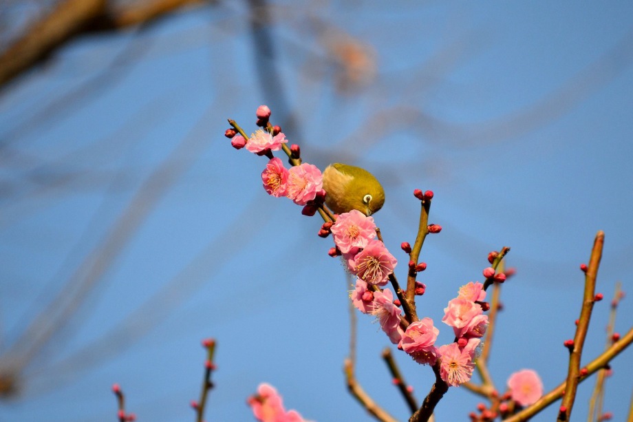 「一言」三田台公園にメジロを見に行きました。メジロやムクドリ、スズメが飛んできていました。梅のピンク色の花の中に小さなメジロが 止まっている様子は風情があり、綺麗でした。三田台公園の梅は次々と咲き出しています。明王院のしだれの白梅も咲き出しました。