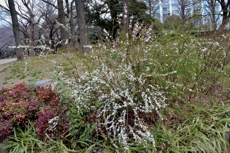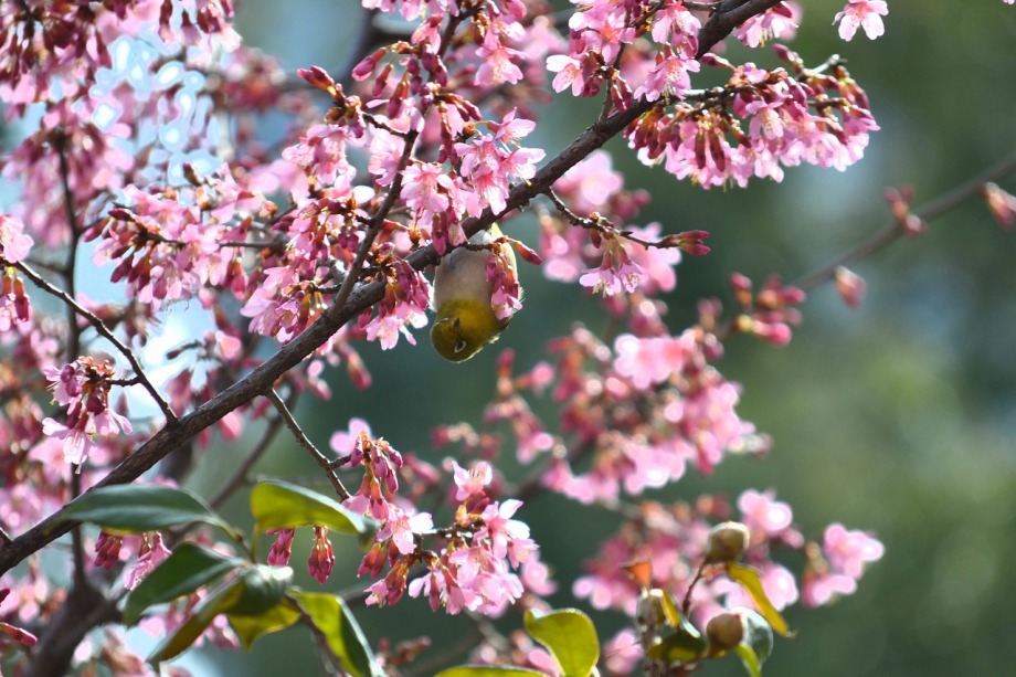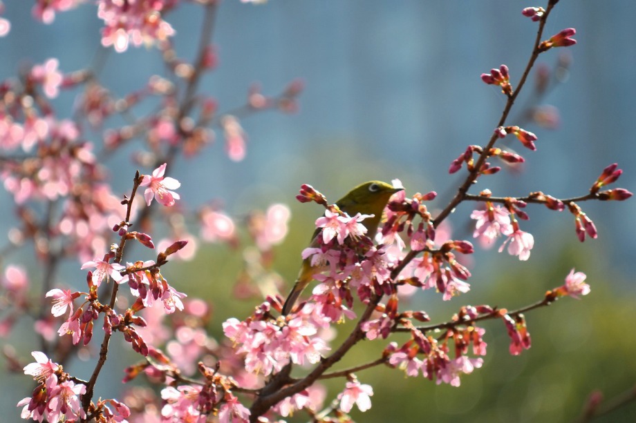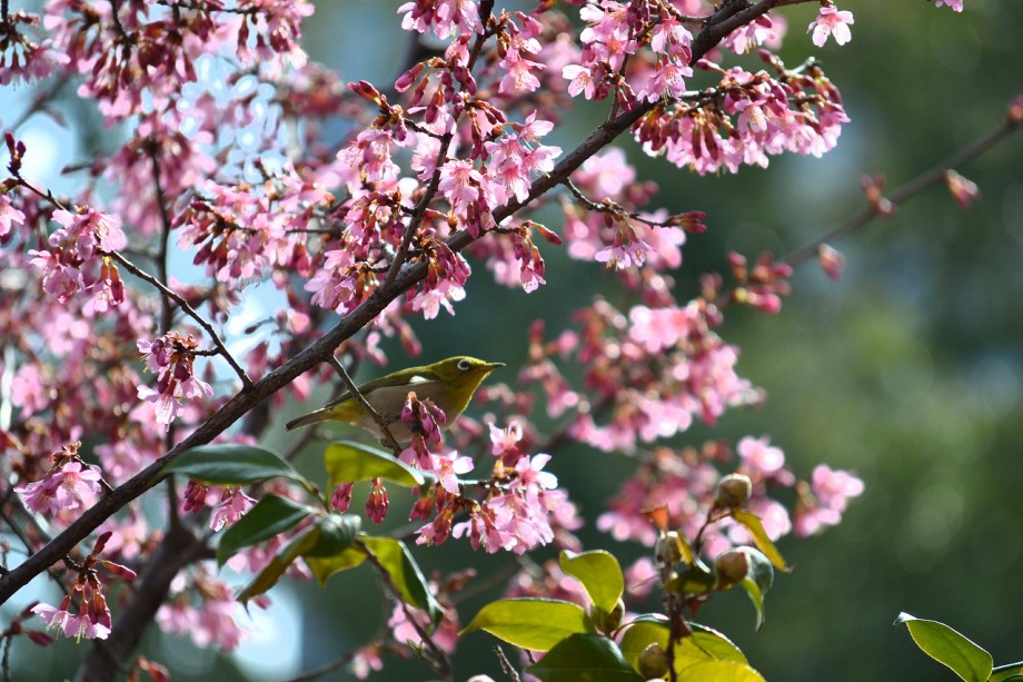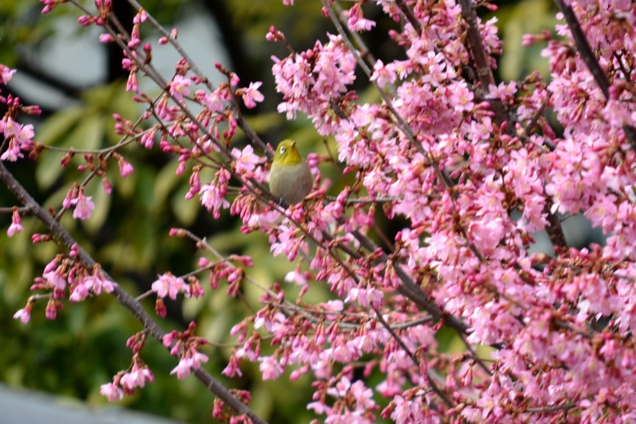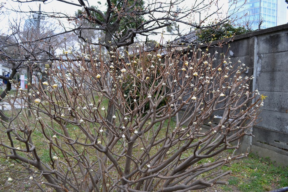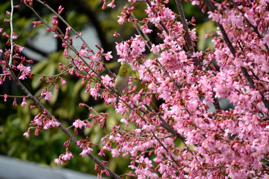 「一言」芝公園の梅林はまだ梅の花が見頃でした。東照宮の寒緋桜?も咲き出しました。芝公園にはマンサクやロウバイ、沈丁花、 ミツマタコウゾウ、ミモザ、ユキヤナギなど色々な花が咲いていました。妙定院の早咲きの桜は見頃で、メジロがとまっていました。