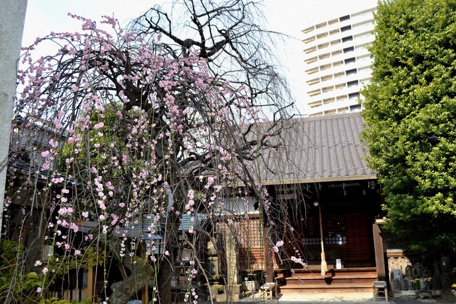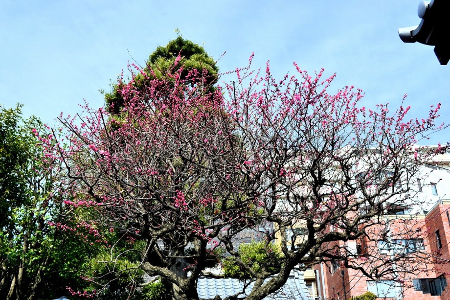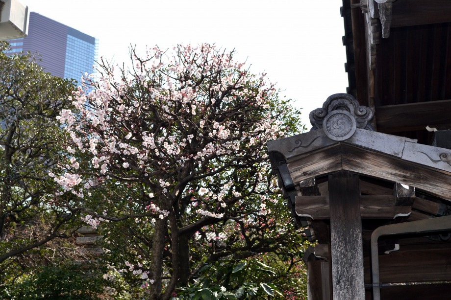 コブシも咲き始めていました。玉鳳寺の白梅が見頃でした。今日は高輪2丁目の證誠寺に行きました。紅梅が咲き始めでした。