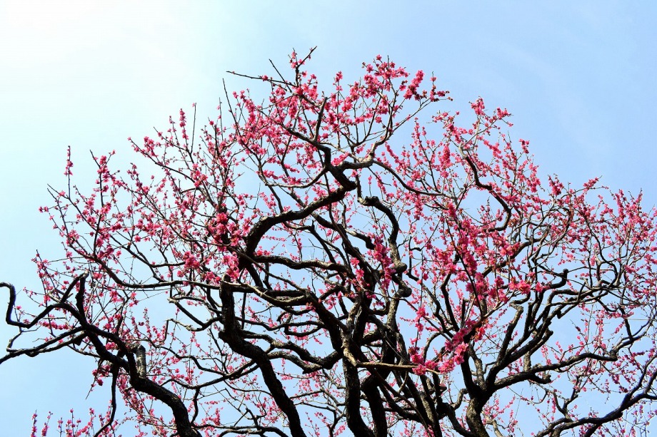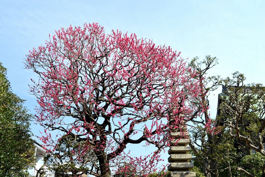 明王院の枝垂れの紅梅が咲いていました。また、赤い木瓜も咲いていました。明福寺には大きな紅梅が見事でした。仙翁寺の