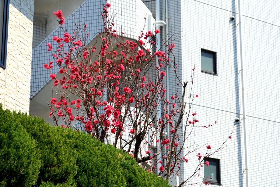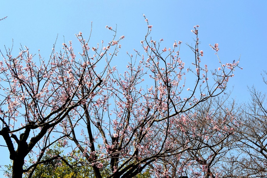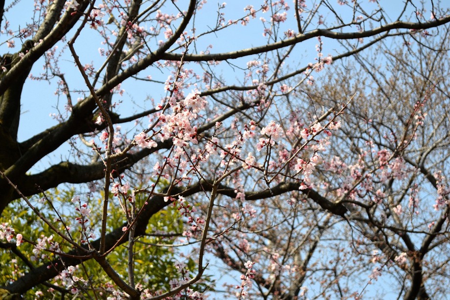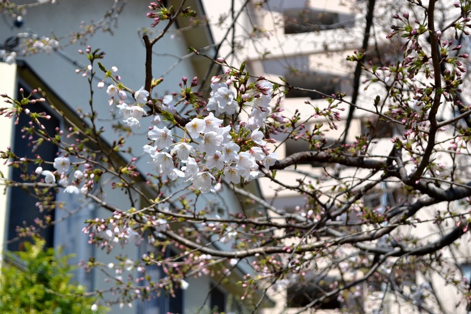 が屋根の上でいっぱいに花をつけていました。どこもソメイヨシノはもう少しという感じでした。