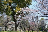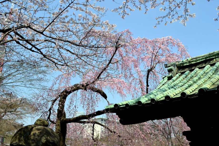 「一言」今日は増上寺のしだれ桜を見に行きました。大きなしだれ桜の木は満開で、いっぱい花が咲いている長い枝垂れの枝は 迫力があり綺麗でした。芝公園にはハナモモやモモの花が咲き始めていました。港図書館の横には大きな桜が満開でした。 菜の花も咲いていました。愛宕神社には陽光桜が満開で綺麗でした。