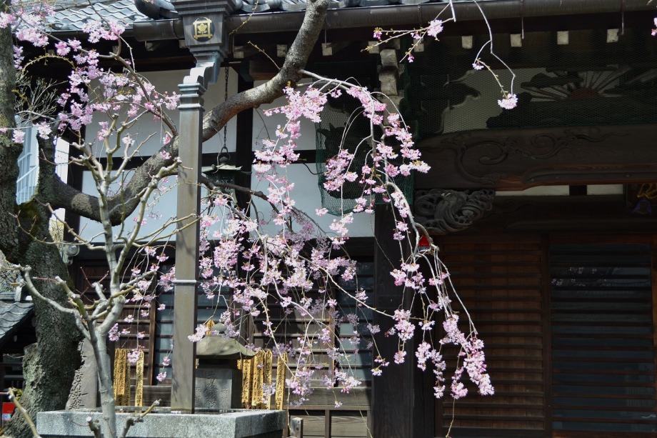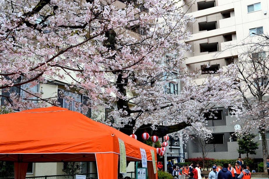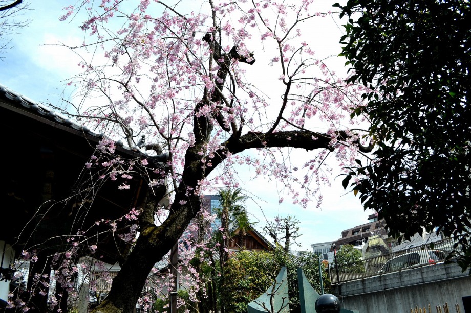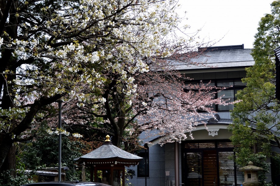 桜はかなり多く咲いていた。今日は桜まつりで色々な準備をしていました。普段は門が閉まっている隋応寺には桜の花が咲いていました。