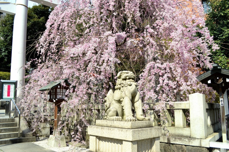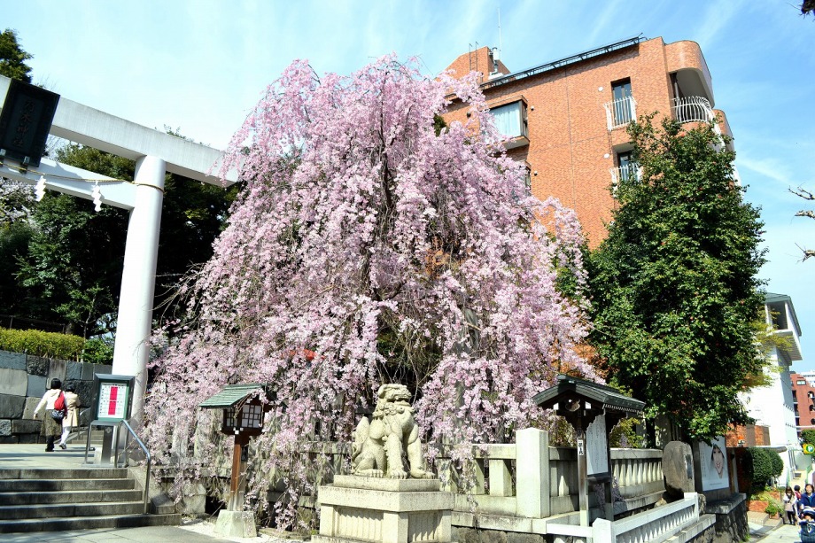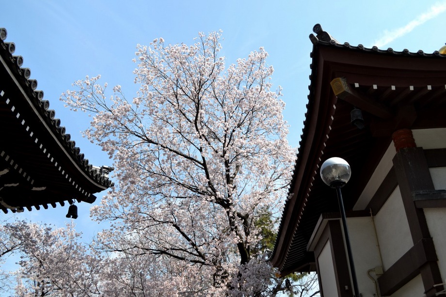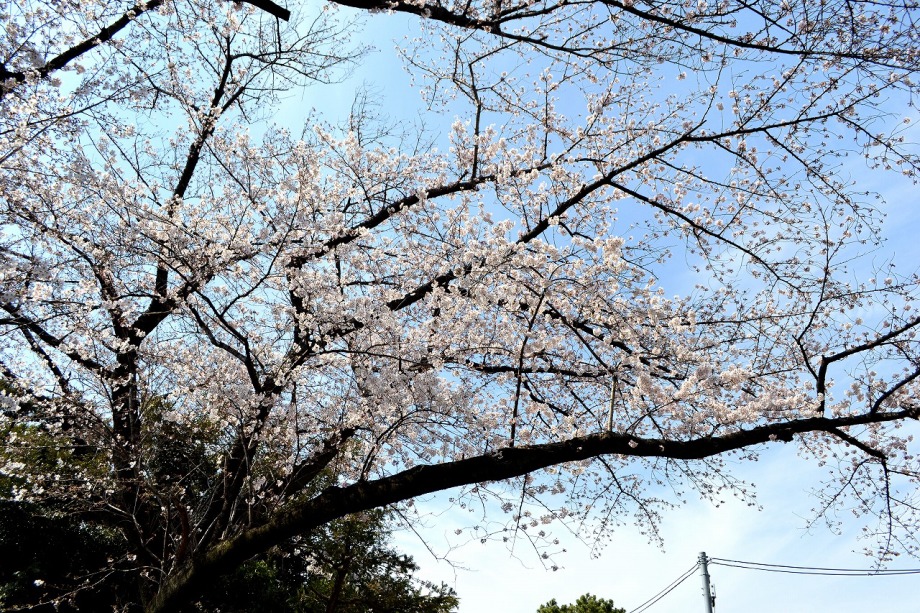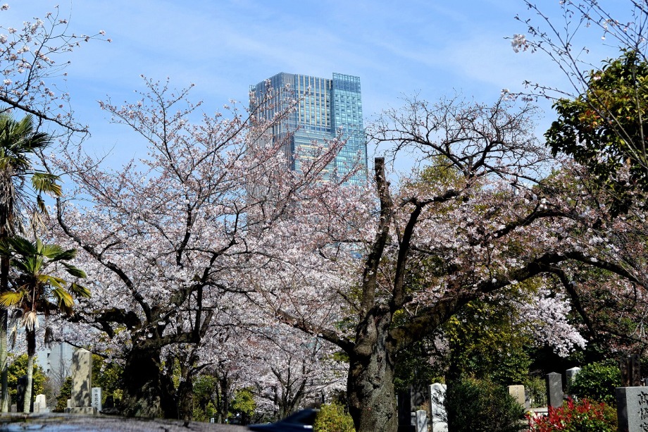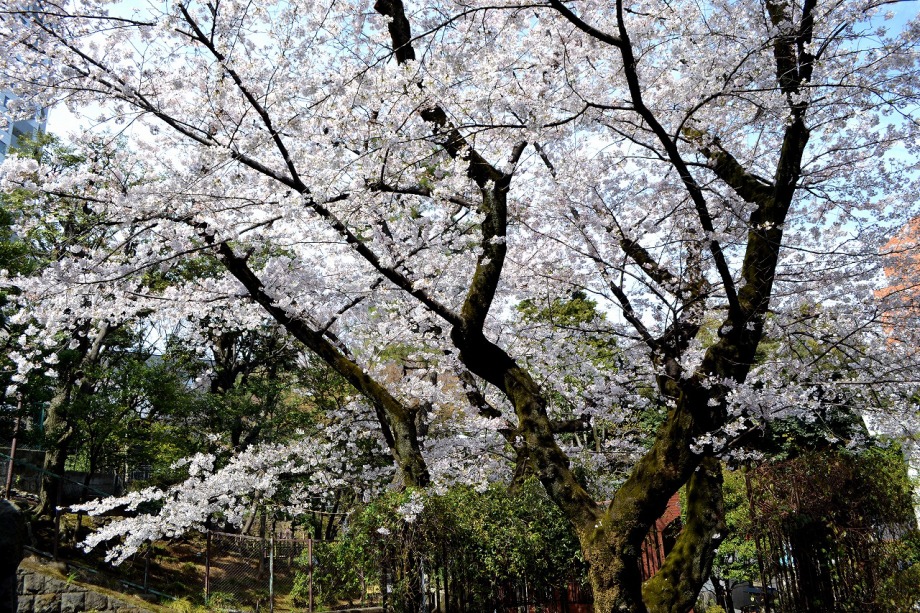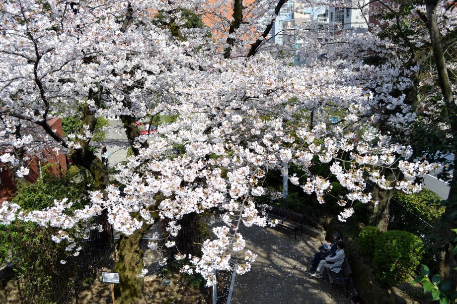 「一言」青山、赤坂地域の桜を見に行きました。行く途中で善福寺の桜が広い境内に咲いていました。桜の花を見に来る人が少なく、