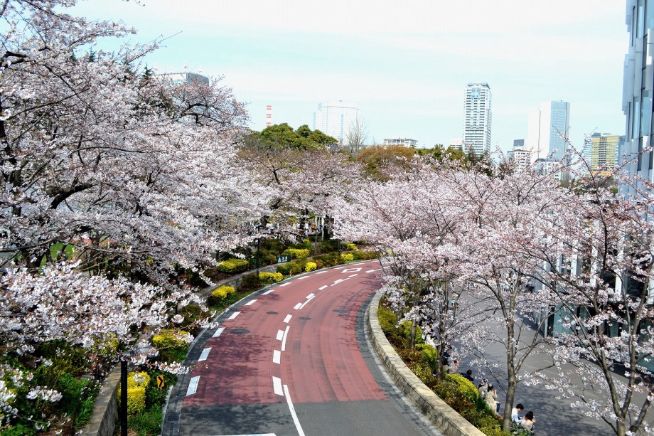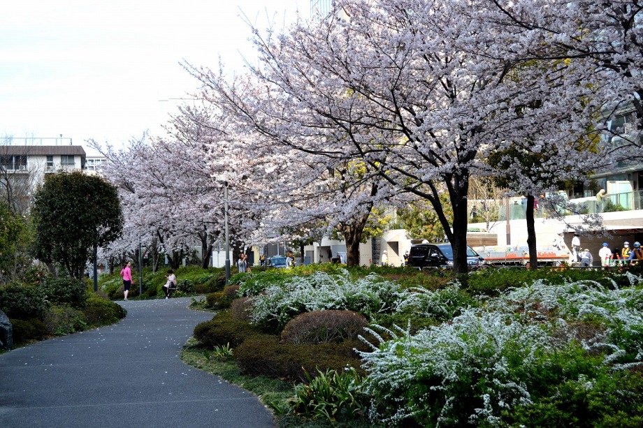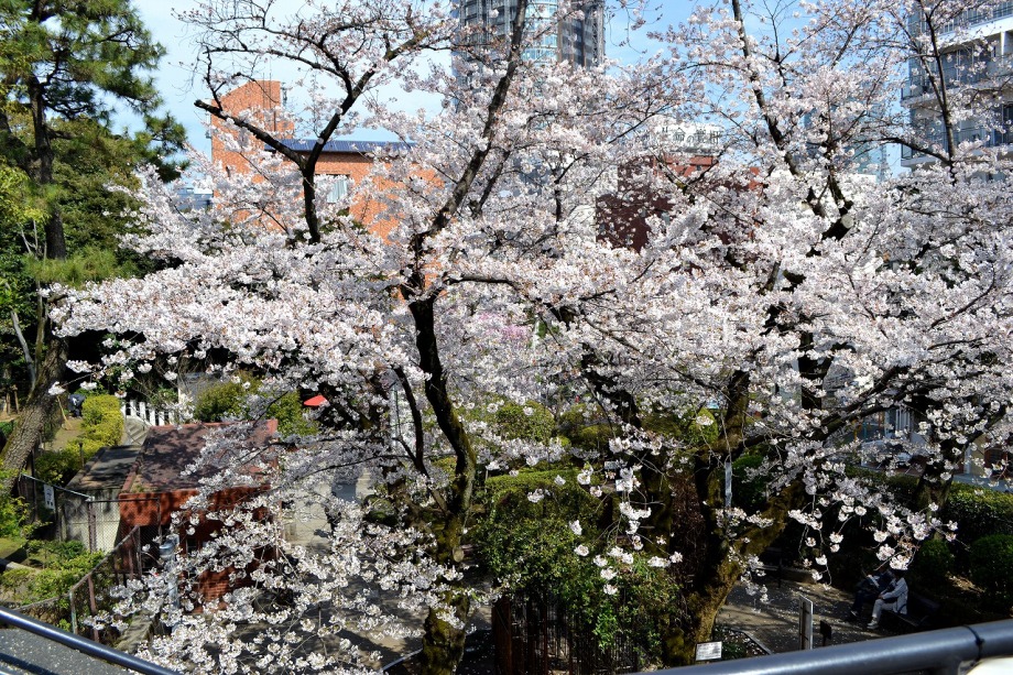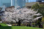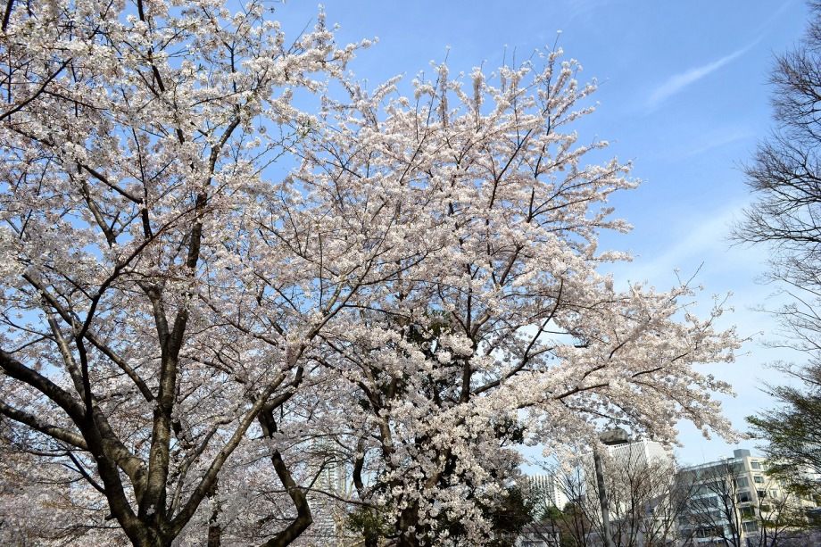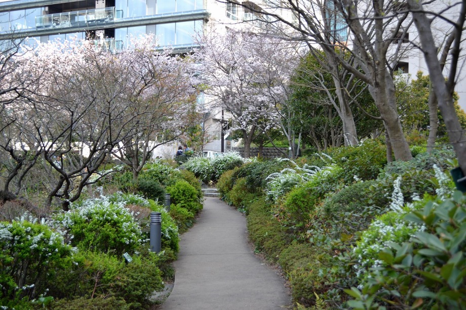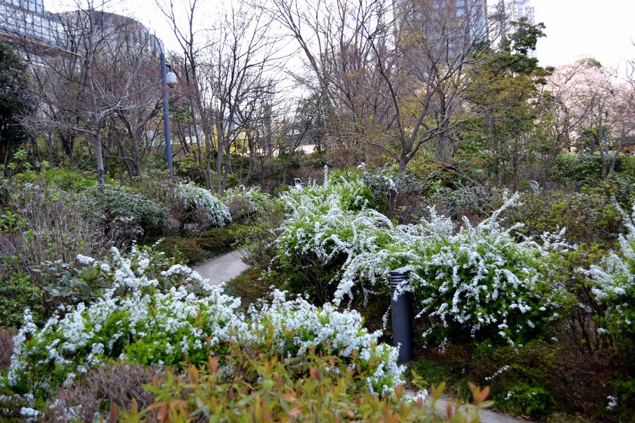 の桜も見頃で、たくさんの人が花見をしていました。檜町公園にはユキヤナギが一杯咲いて綺麗でした。毛利公園も桜が満開でした。