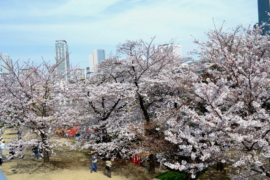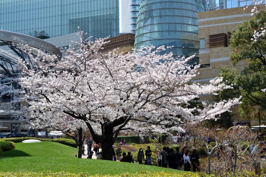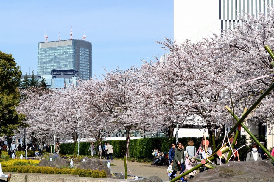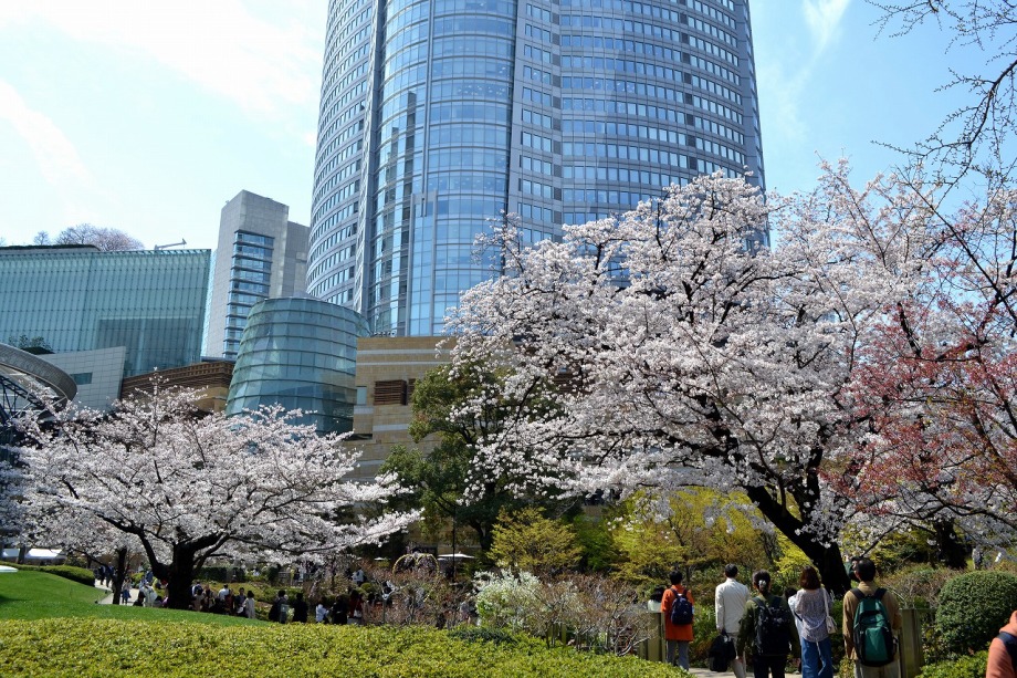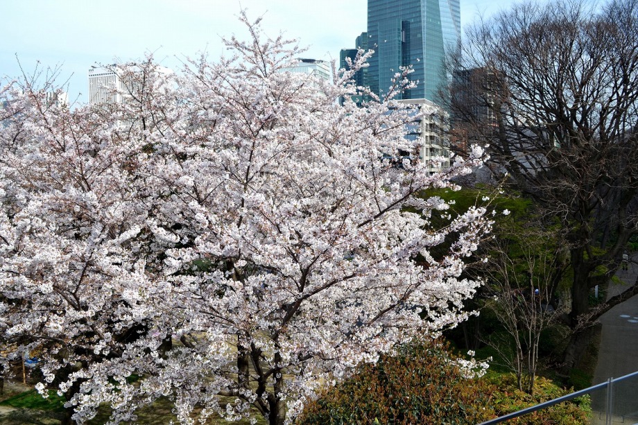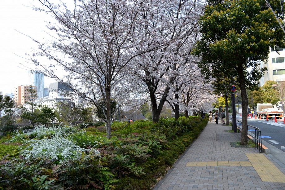 の桜も見頃で、たくさんの人が花見をしていました。檜町公園にはユキヤナギが一杯咲いて綺麗でした。毛利公園も桜が満開でした。