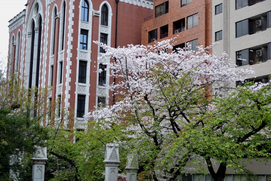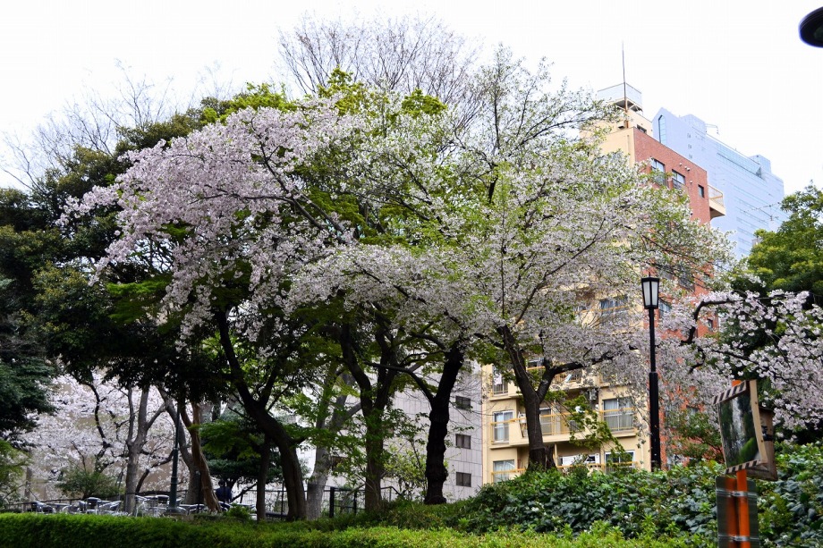 「一言」今日は芝浦の桜並木を見に行きました。桜並木の桜は満開で、綺麗でした。田町駅の東側の桜も咲いていましたが、工事の関係のためか、 少し桜の木が少なくなっている感じがしました。本芝公園の石楠花もたくさん咲いていましたが、JRの線路脇の大きな石楠花の木はまだ一部 しか咲いていませんでした。数本ある桜の木は満開でした。慶応大学の構内に桜も満開でした。春日神社の桜も満開です。三田国際ビルの 横の桜の木は散り始めていました。