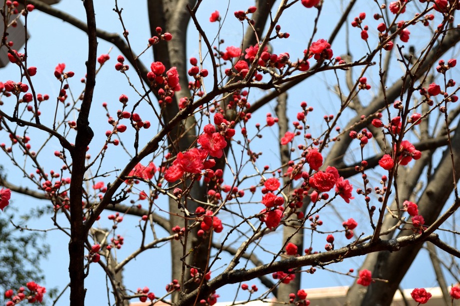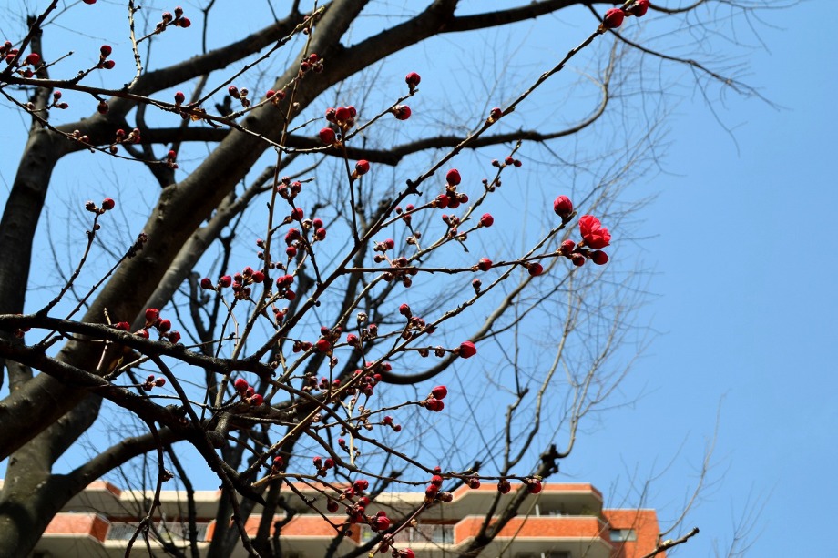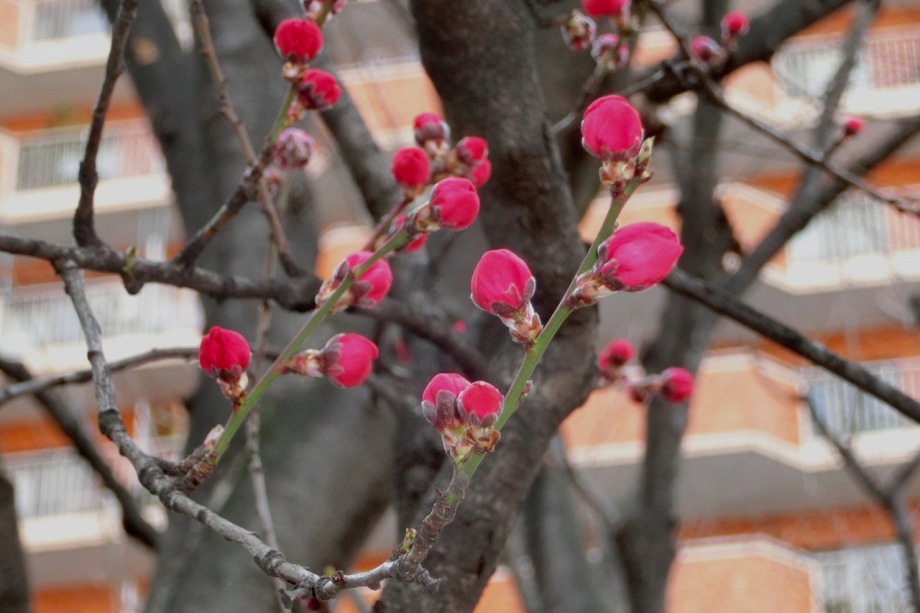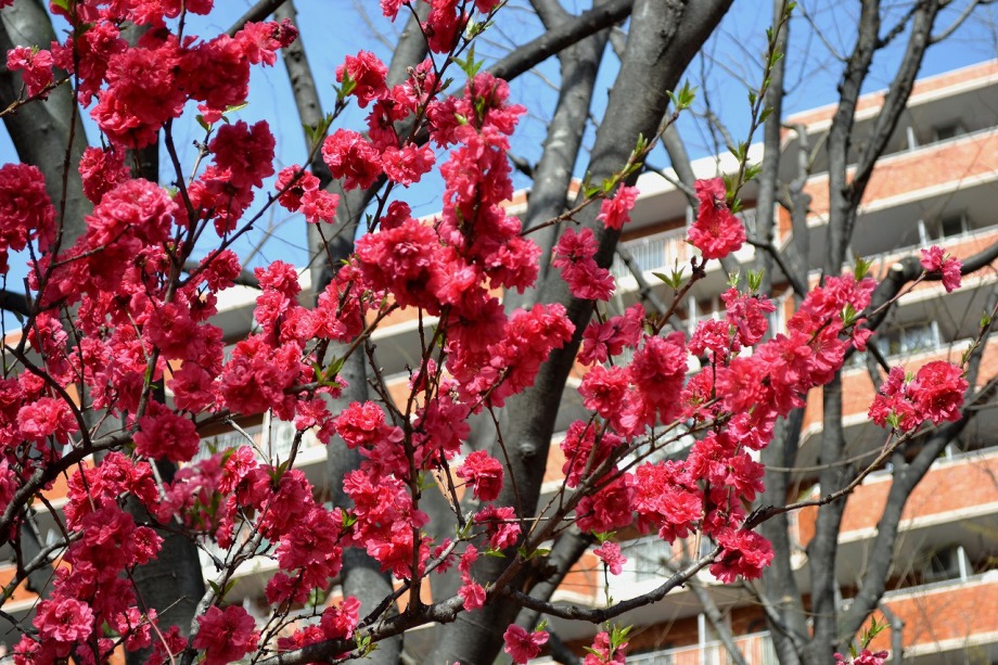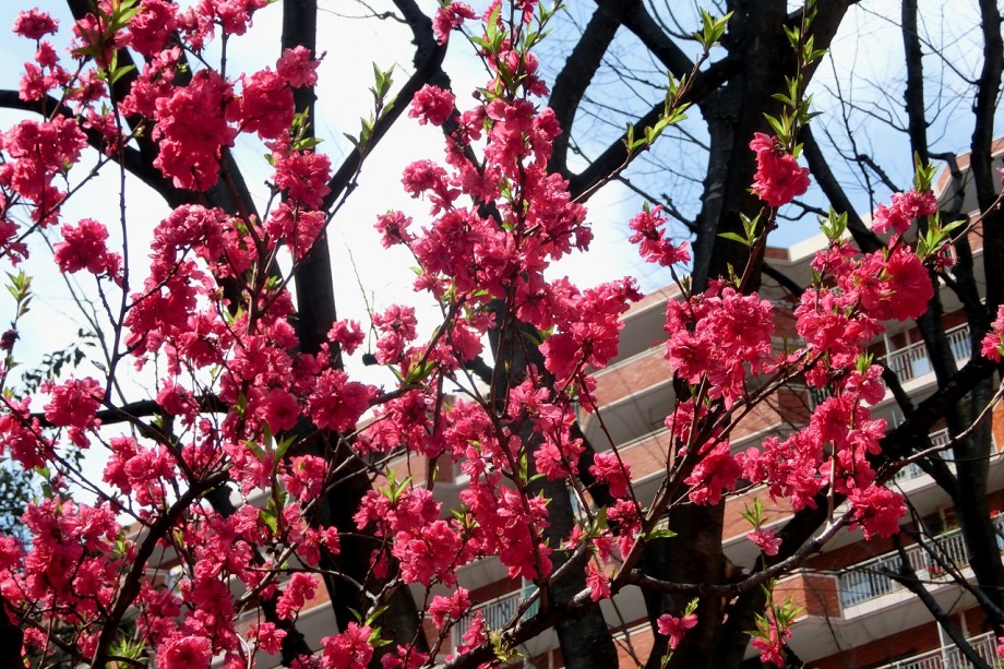 「一言」三田5丁目のバス停の近くに綺麗な花が咲くハナモモがありますので、つぼみから花が咲く状況を写真を撮り続けてみました。