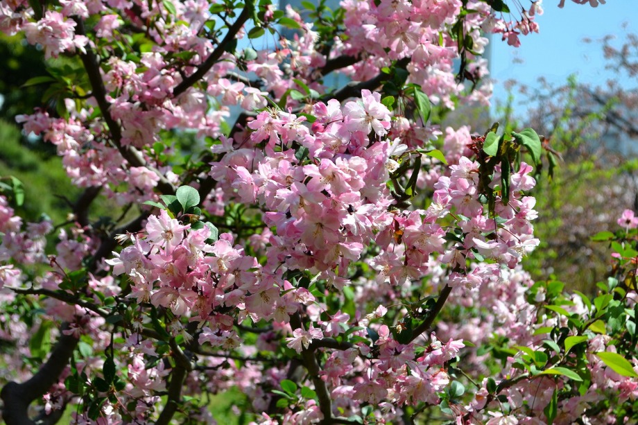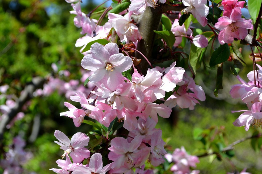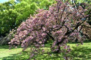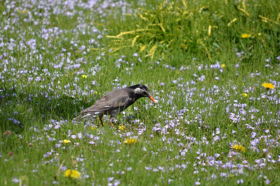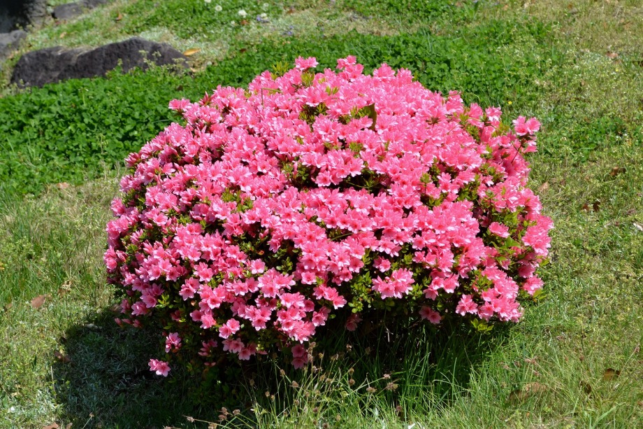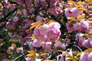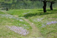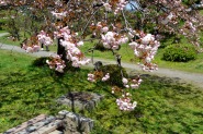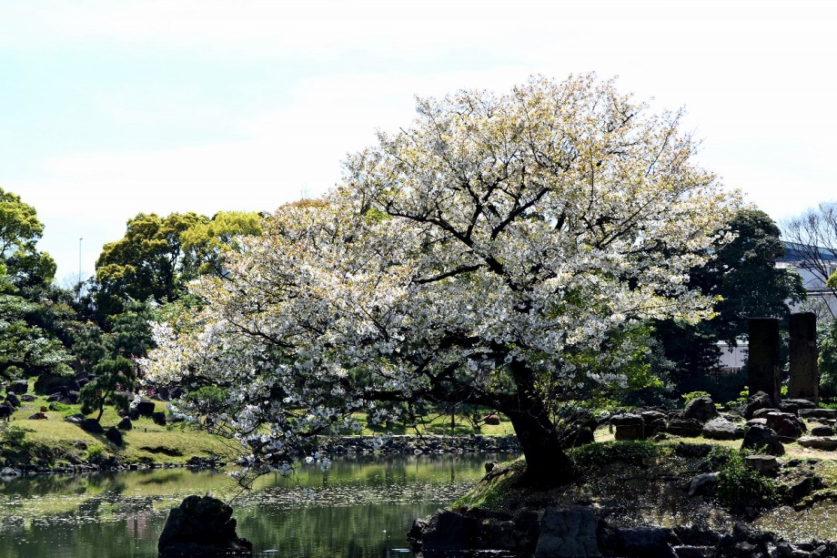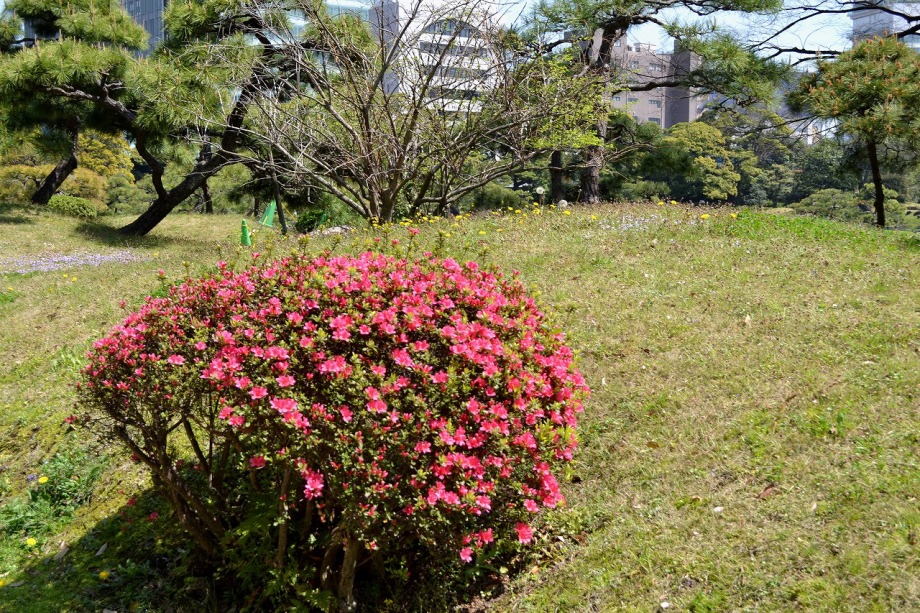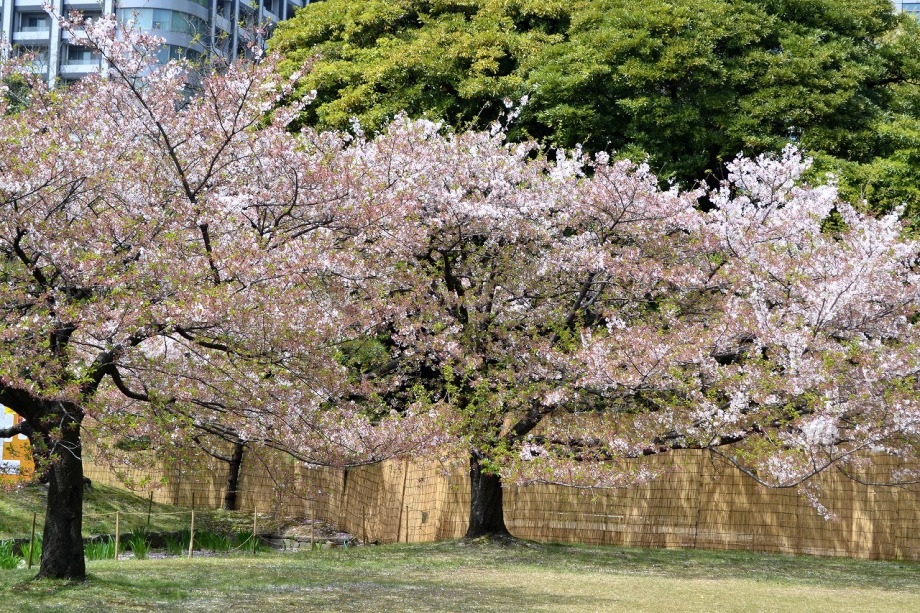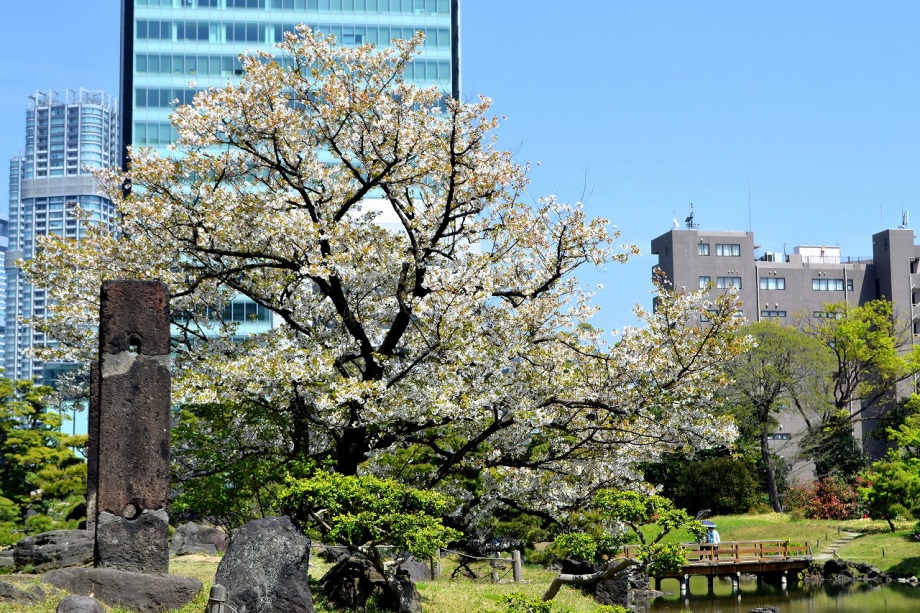「一言」旧離宮には色々なサトザクラがあり、見頃です。関山というサトザクラは濃いピンク色の花が咲きますが、もう少しすると 満開になるという感じでした。御衣黄は黄緑色の花が咲きますが、満開でした。白い花が咲くフゲンゾウというサトザクラ も満開でした。はたくさん植えられている花海棠も満開でした。ツツジも咲き始めていました。鳥もたくさん来ており、芝を 突いていました。