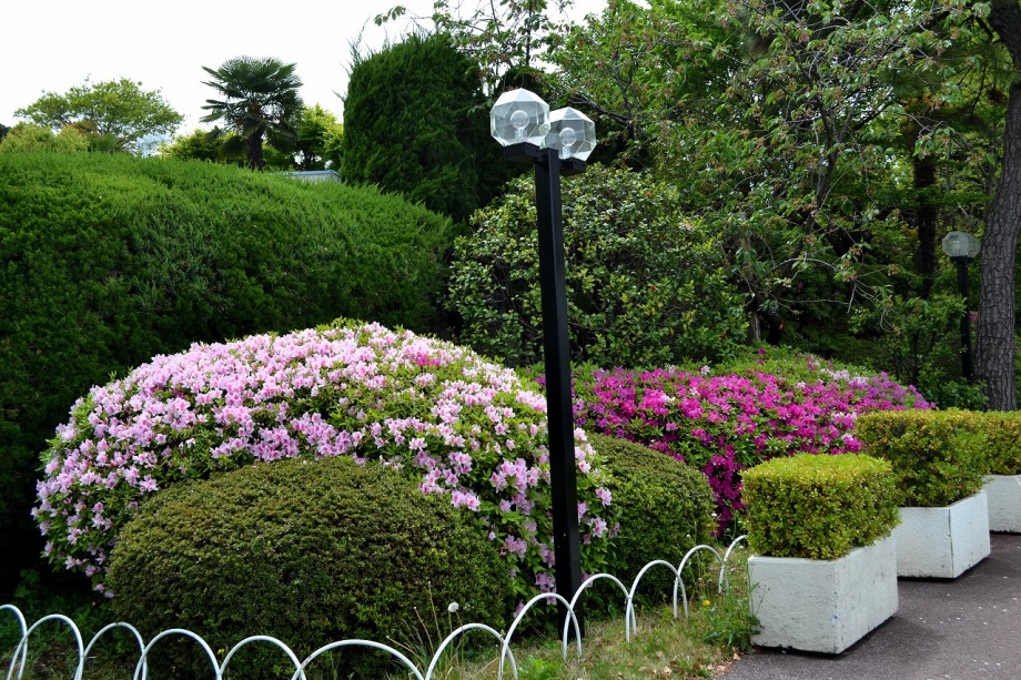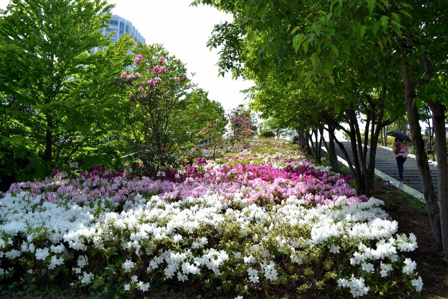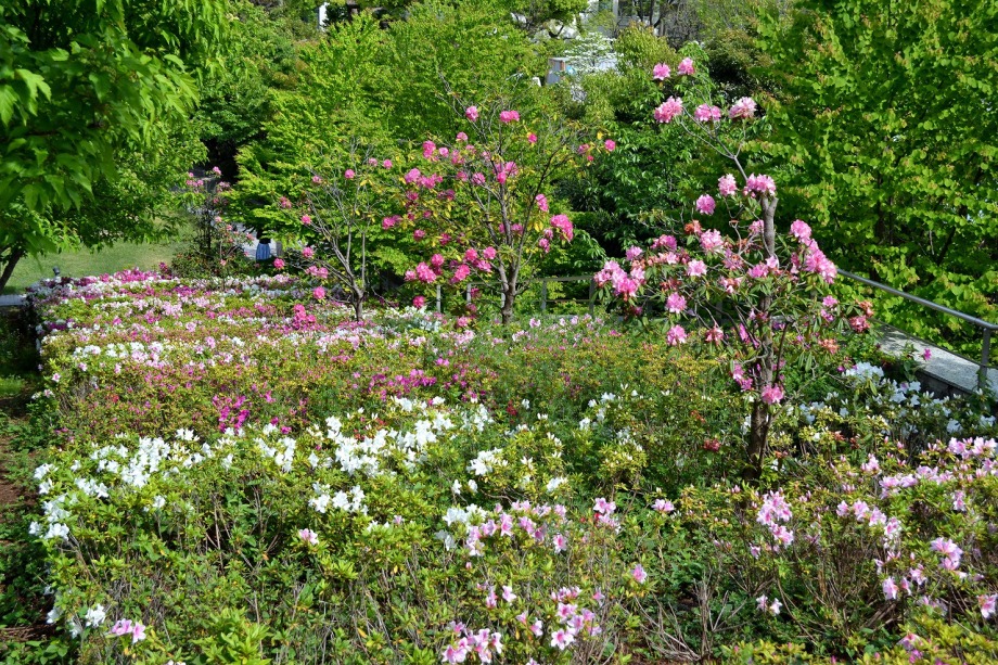 「一言」芝プリンス公園のバラはこれから咲くという状況で、公園内にちらほらと咲いていました。濃い茶色のバラが咲いていました。 しかし、色々な花がたくさん咲いていて綺麗でした。石楠花が公園内のあちこちに咲いていました。増上寺には藤やツツジが 咲いていました。芝公園にはハナミズキが咲いていました。白い花の木には既に青葉が出来ていましたが、ピンクの花の木は まだ綺麗でした。。