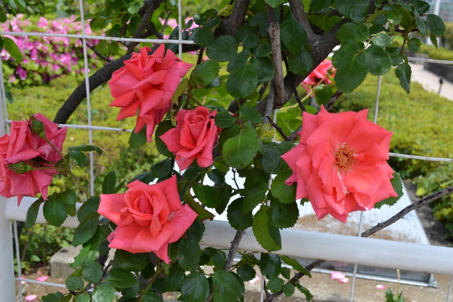 「一言」壁打ちテニスに行ったので、バラの花を見に行きました。既に、たくさんのバラの花が咲いていました。今年はバラの生育が良い感じで、