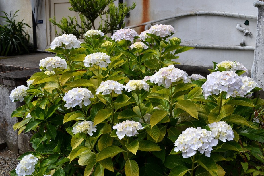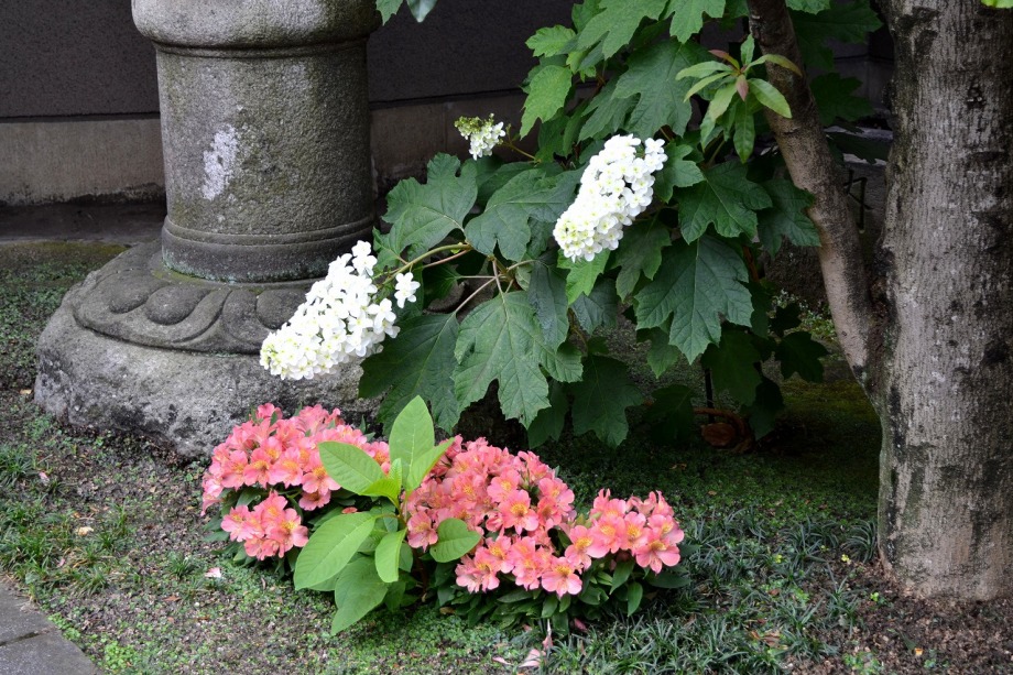 慈眼禅寺の庭にはカイワバ紫陽花やツツジなどの花が咲いていました。願海寺には白い紫陽花の他に、大きな