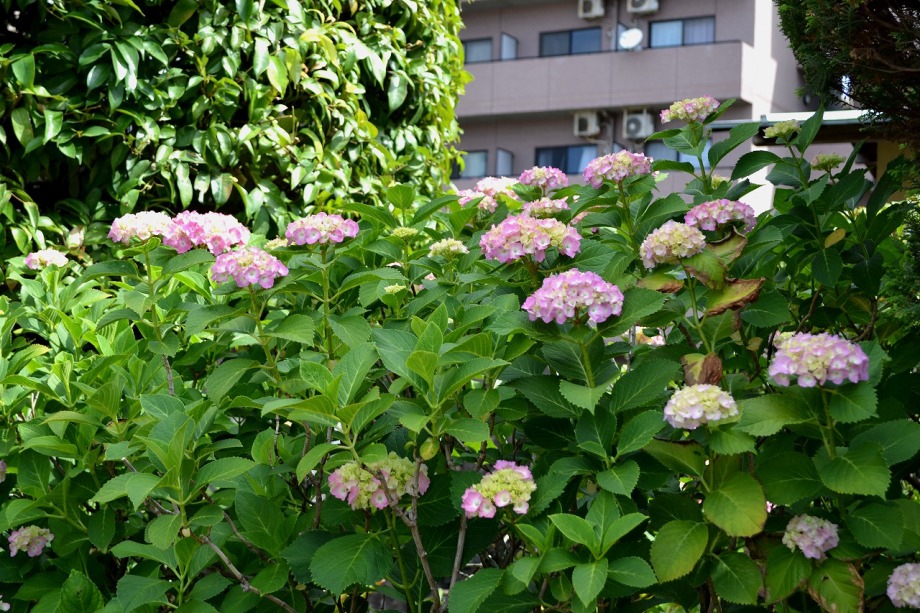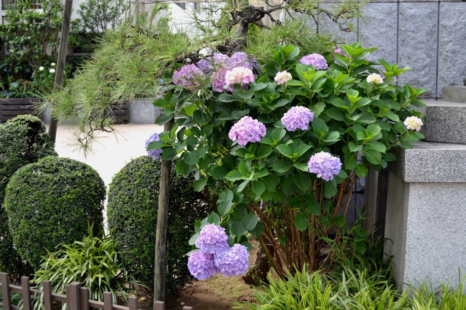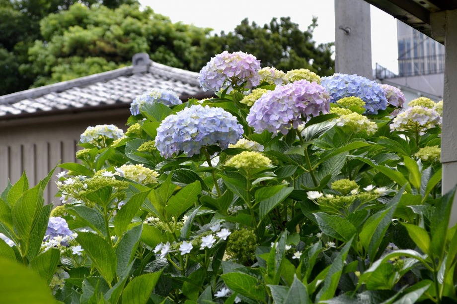 いました。大信寺の境内には紫陽花が見頃でした。三田5丁目のマンションの横の紫陽花も咲き始めていました。