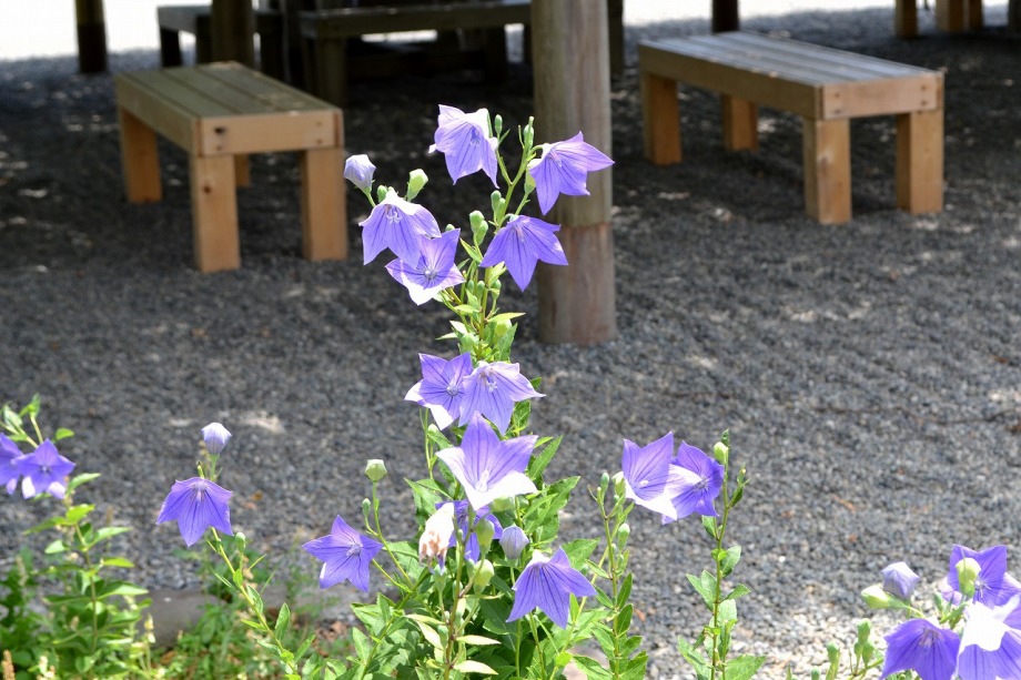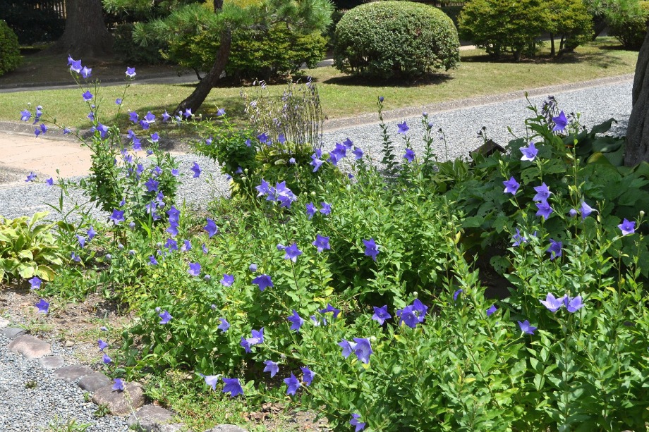 「一言」今朝は暑い日でしたが、旧芝離宮恩賜庭園にお花を見に行きました。入り口には桔梗の花が咲いていました。