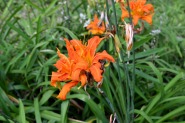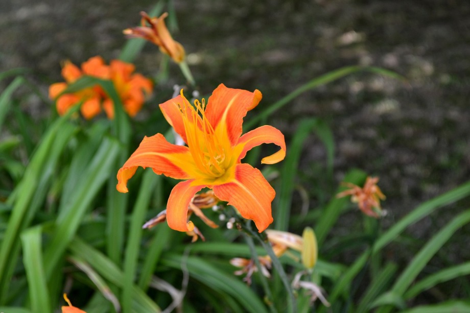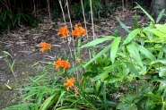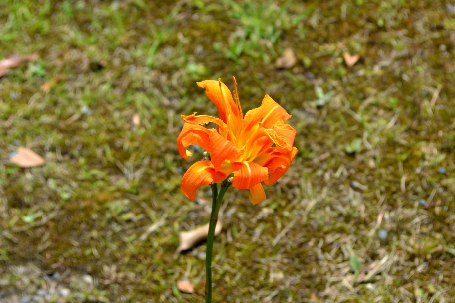 ノカンゾウは既に枯れている花もありましたが、まだ綺麗な色の花が咲いていました。黒い揚羽蝶が飛んできて花に