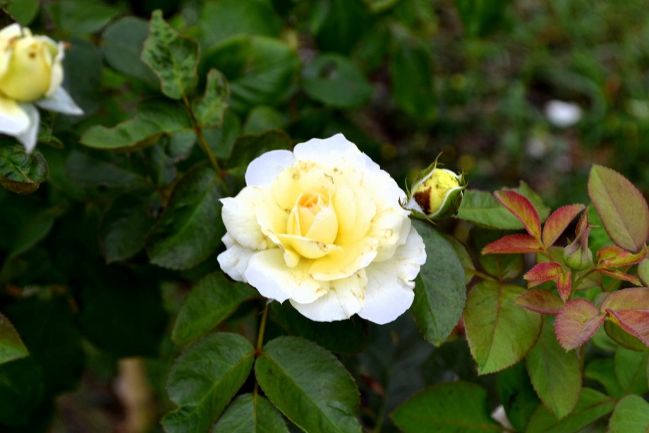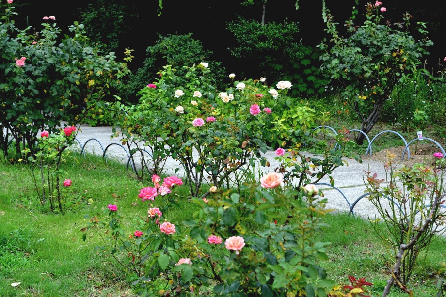 咲いていて、少し驚きました。自立型のバラの花で、少しお花が小さい感じがしましたが、色々な色のバラの花が咲いていました。