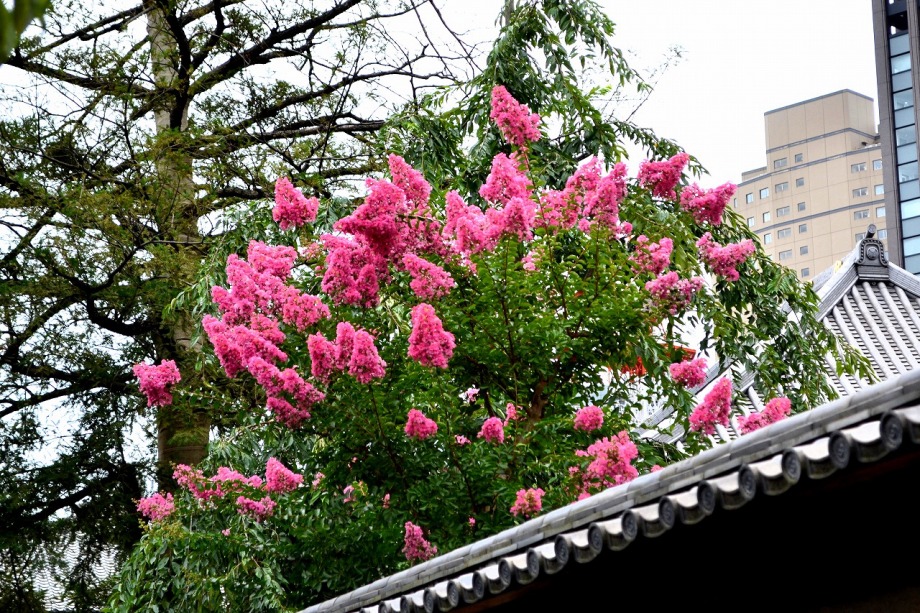 が集まっていました。妙定院の百日紅が鮮やかなピンク色の花を咲かせていました。